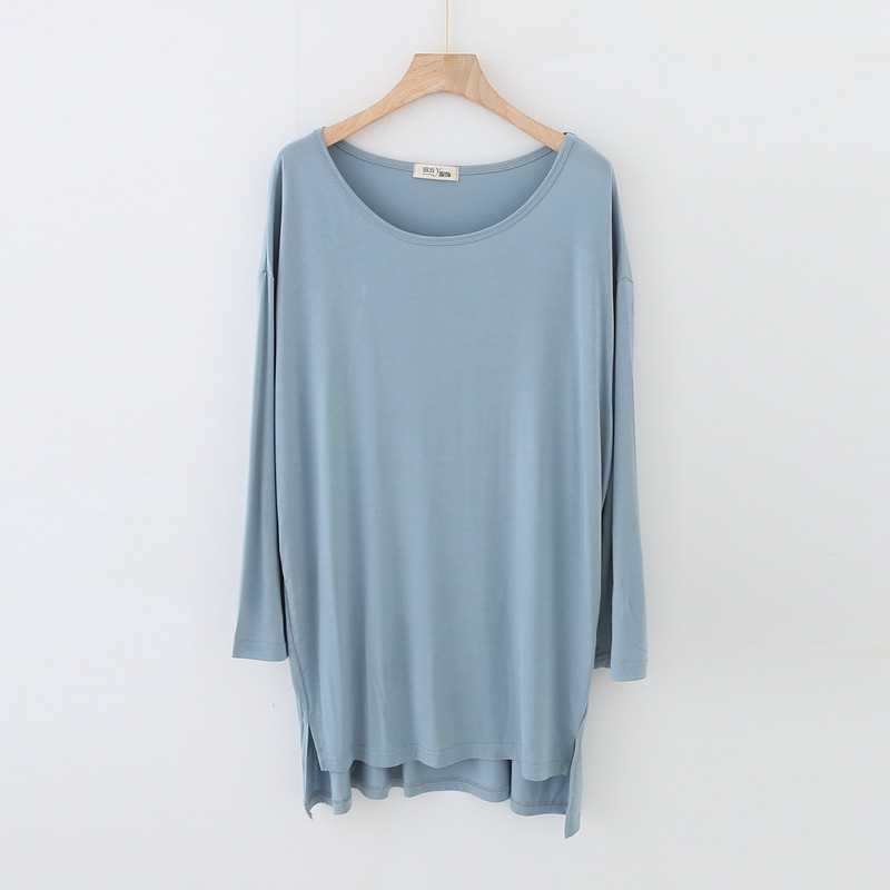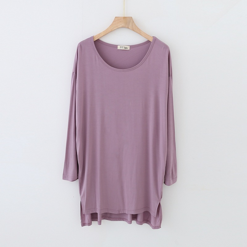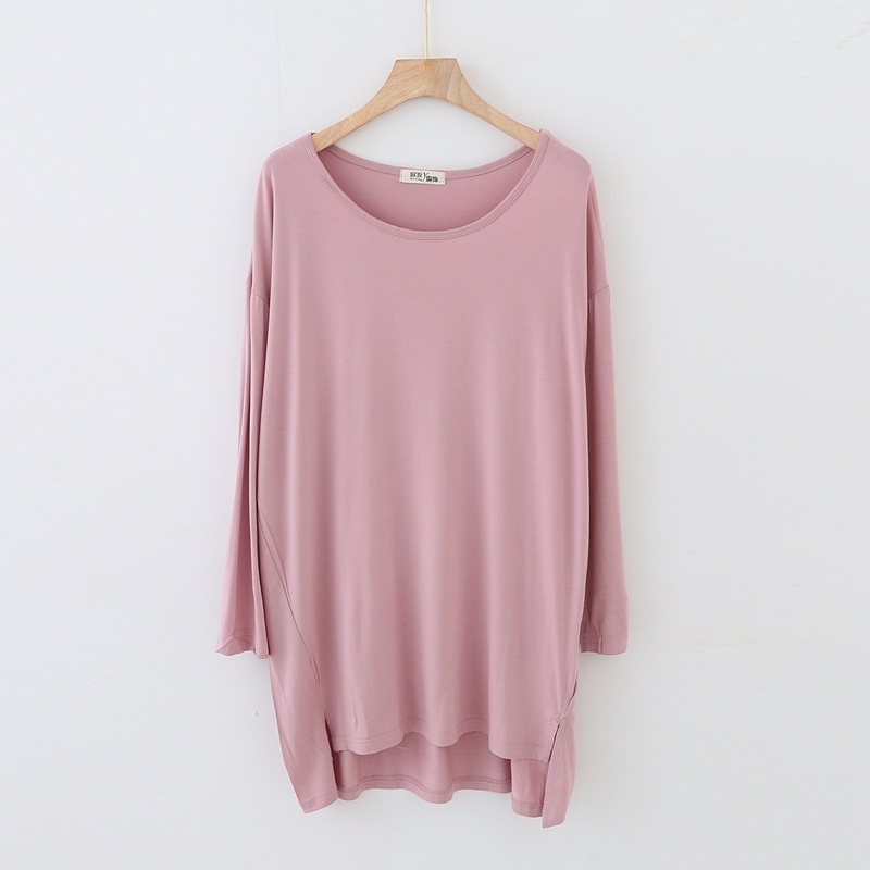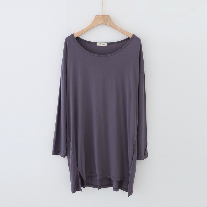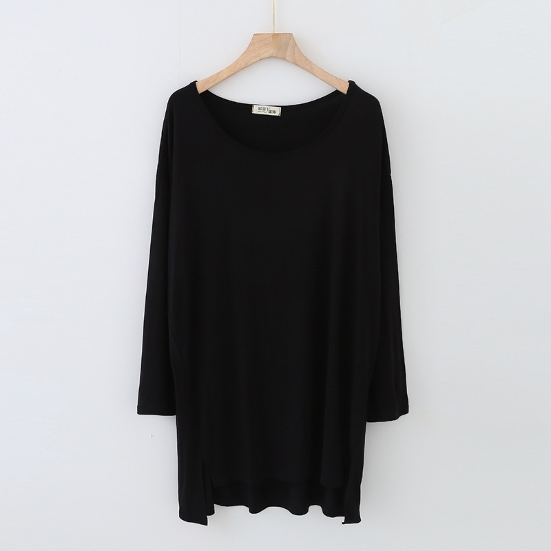 봄과 가을 비트 면 긴 소매 중간 길이 원피스 새로운 짧은 앞과 긴 뒤 원피스 한국 단색 느슨한 플러스 사이즈 스커트스토어 가기