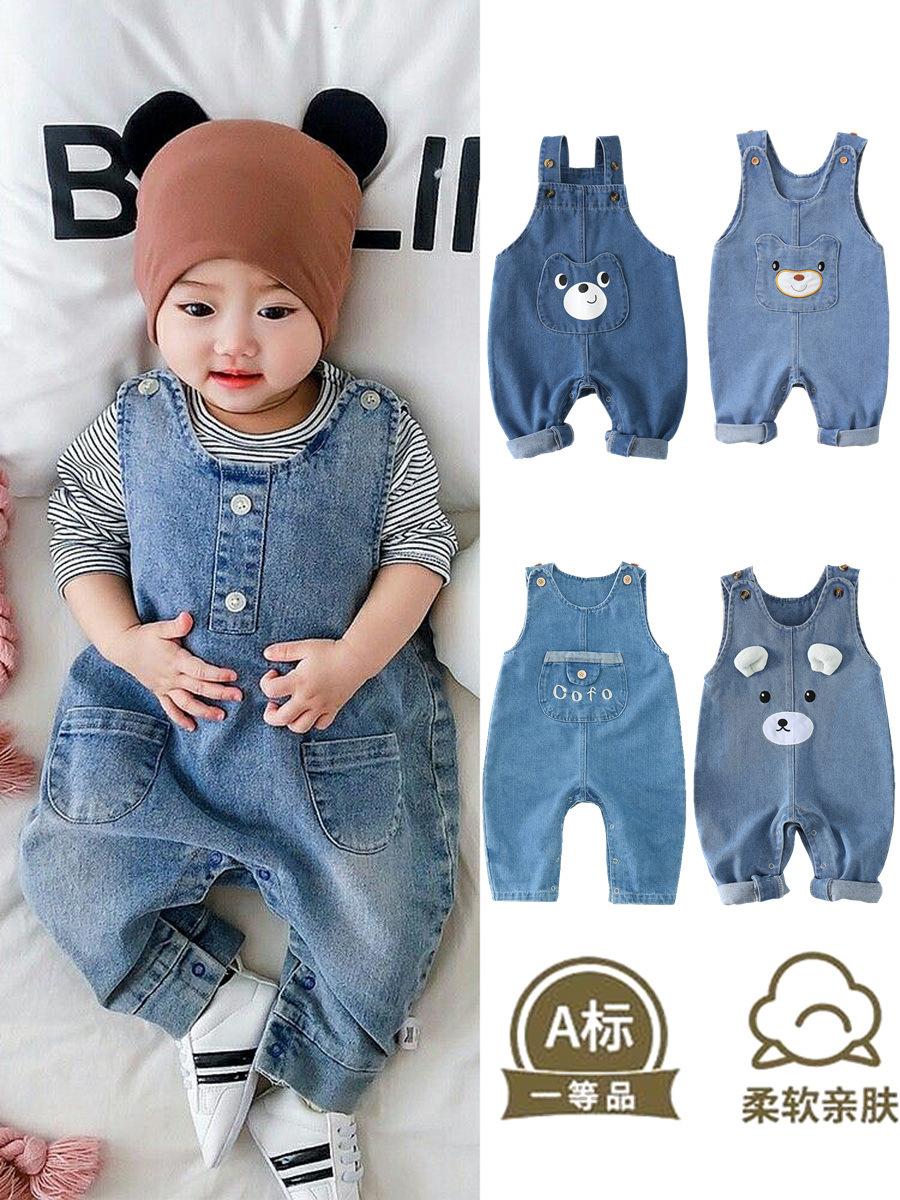 소년과 소녀를위한 서양식 아기 결합 옷 신생아 어린이를위한 민소매 등산 의류 부드러운 데님 멜빵 봄과 가을스토어 가기