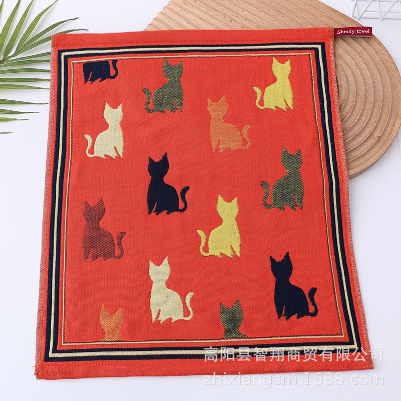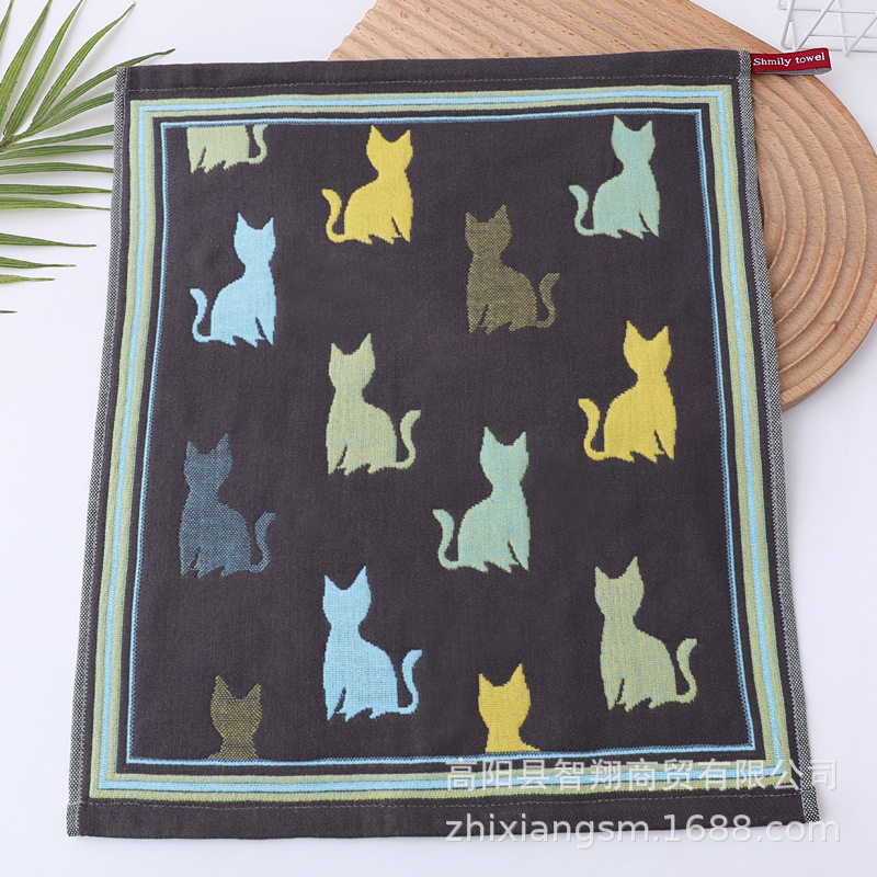 쯔양 타월 가을과 겨울 뉴 컬러풀 고양이 거즈 스퀘어 타월 소프트 흡수 키친 핸드 타월 공장 가격 도매스토어 가기