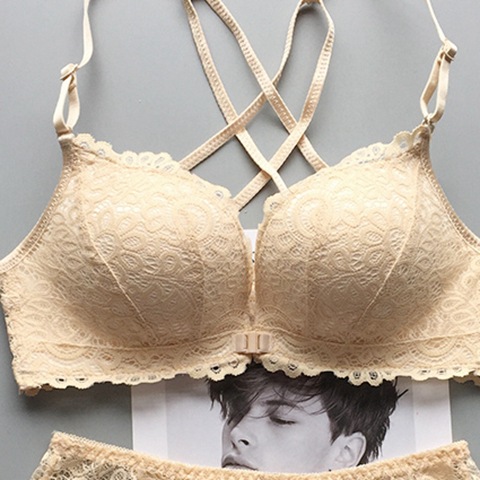 아름다운 뒤 브래지어 작은 가슴 푸시 업 아니 강철 반지 섹시 두꺼운 전면 단추 속옷 세트 얇은 등이없는 인터넷 인기있는 새로운 스타일