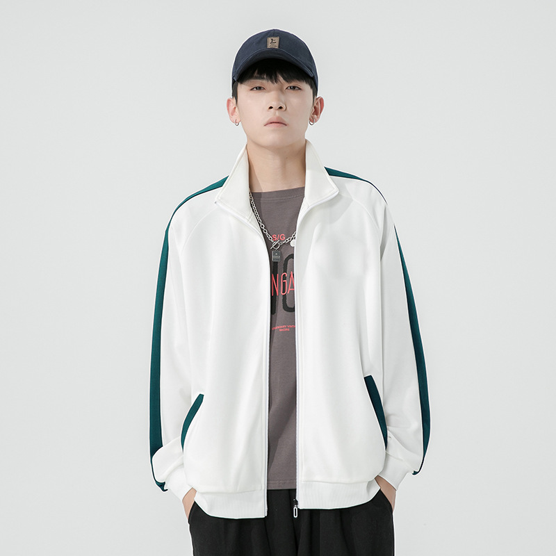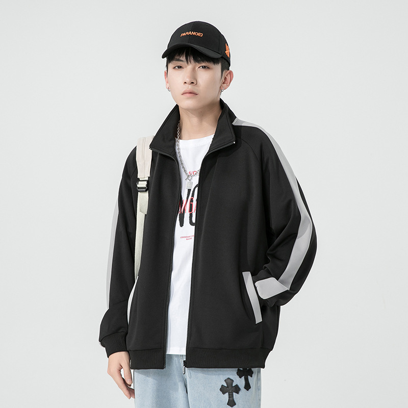남성용 카디건 스웨트셔츠 2026 봄/가을 홍콩 스타일 레트로 트렌디 브랜드 배색 무지 루즈핏 스포츠 지퍼 스탠드 칼라 자켓스토어 가기