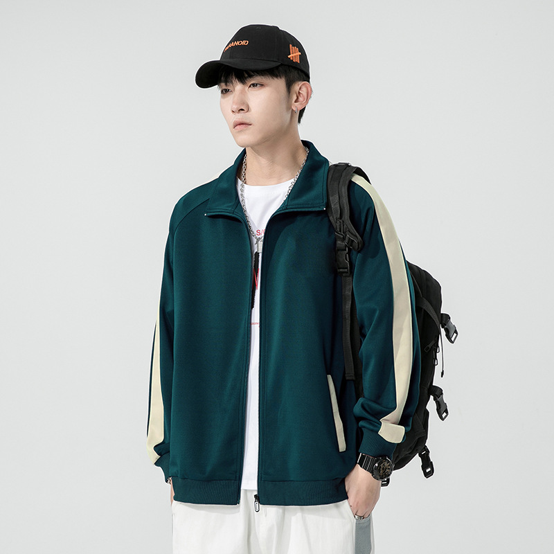 남성용 카디건 스웨트셔츠 2026 봄/가을 홍콩 스타일 레트로 트렌디 브랜드 배색 무지 루즈핏 스포츠 지퍼 스탠드 칼라 자켓