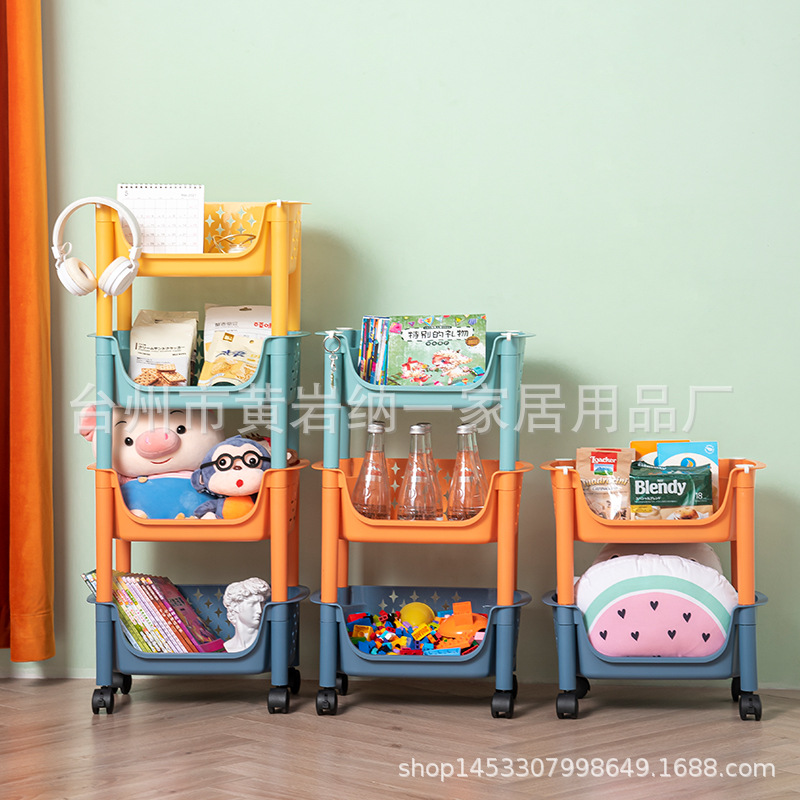 새로운 어린이 장난감 트롤리 보관 랙 스낵 그림책 보관 랙 이동식 바닥 거실 조직 랙
