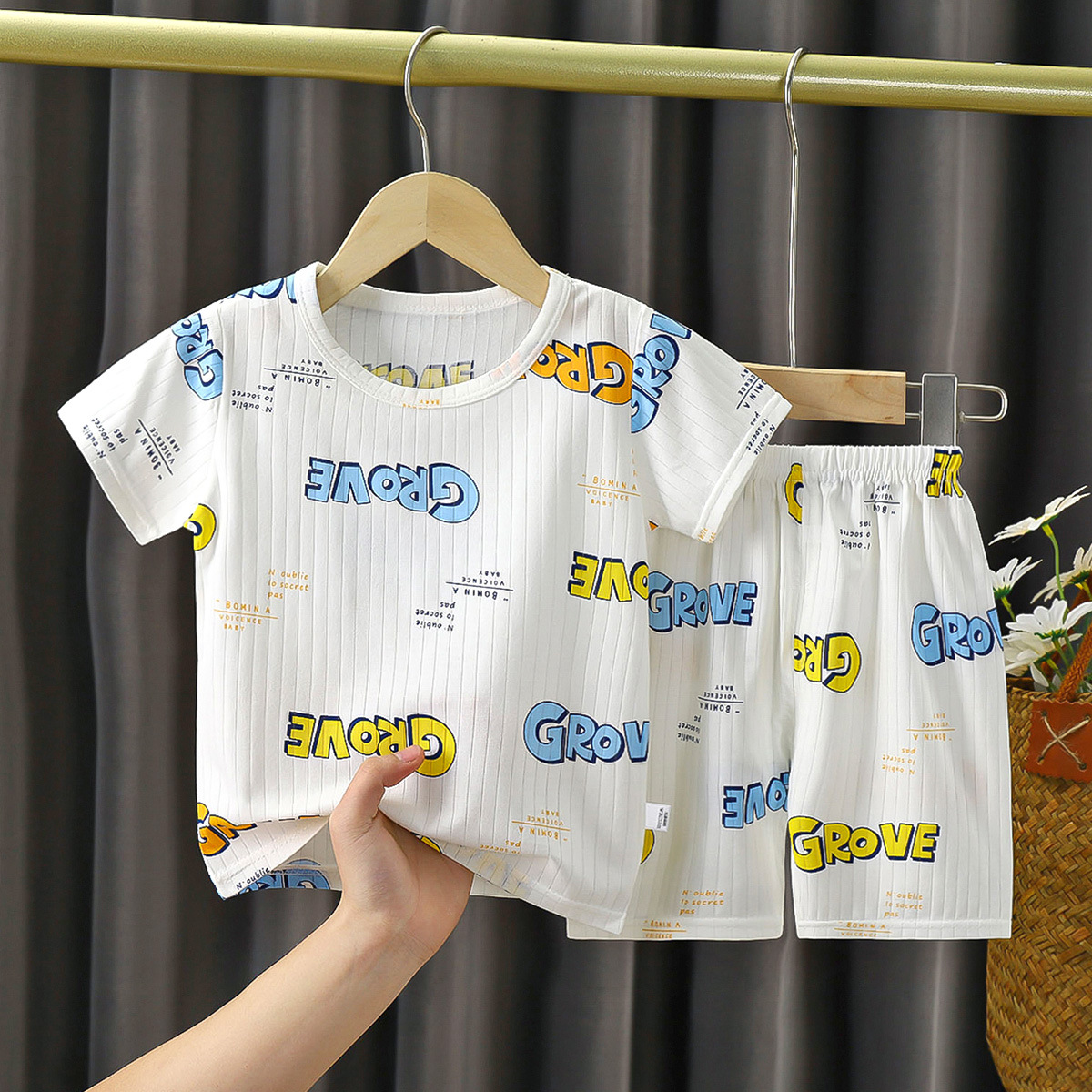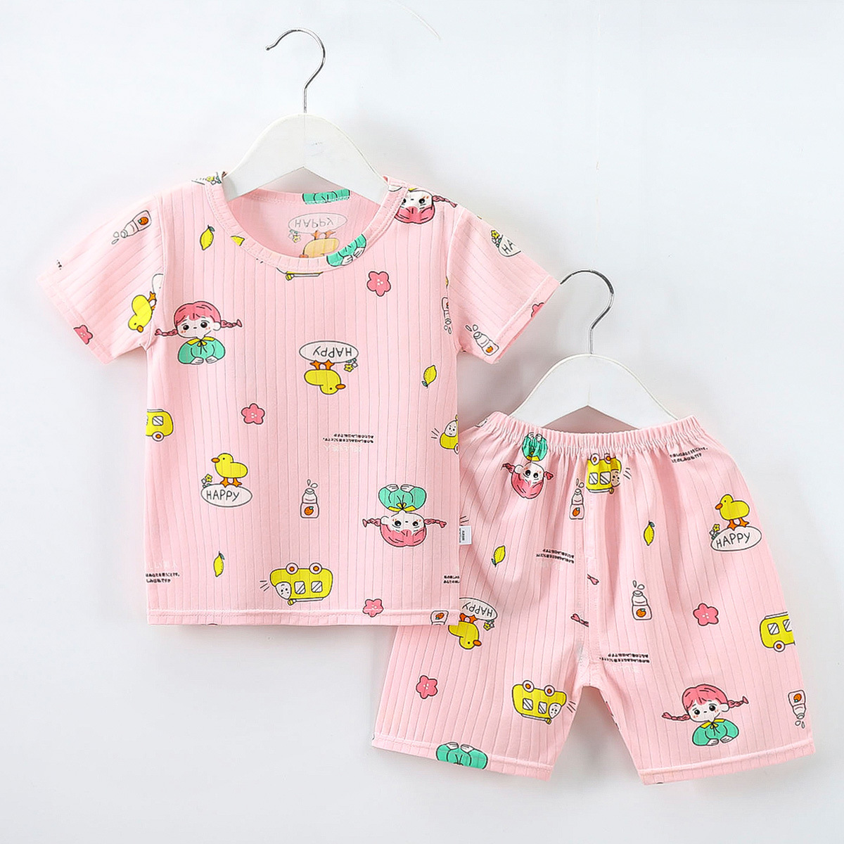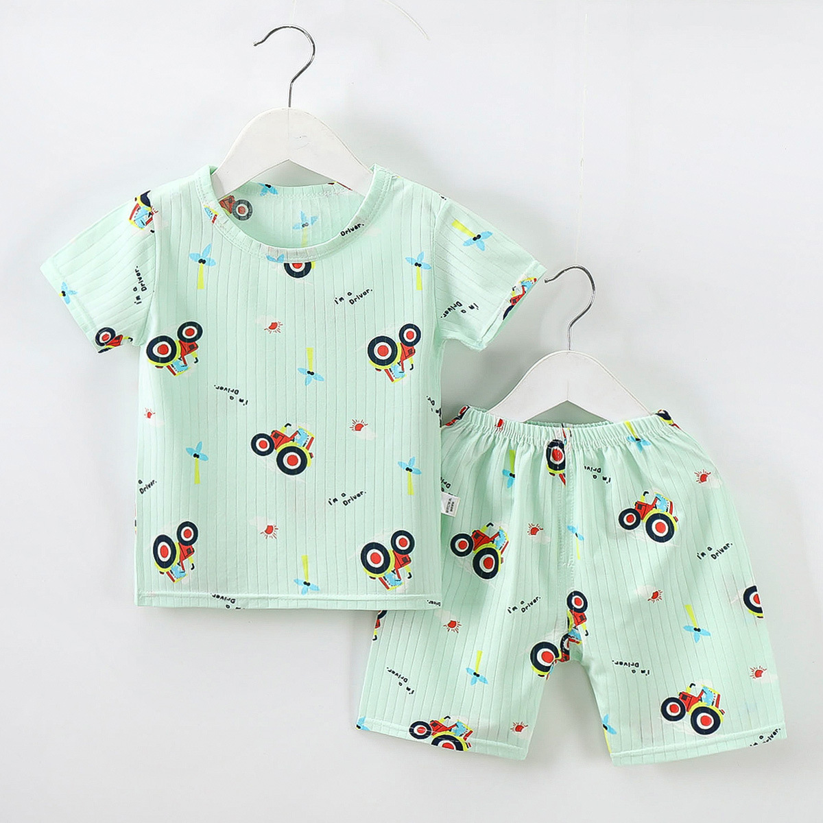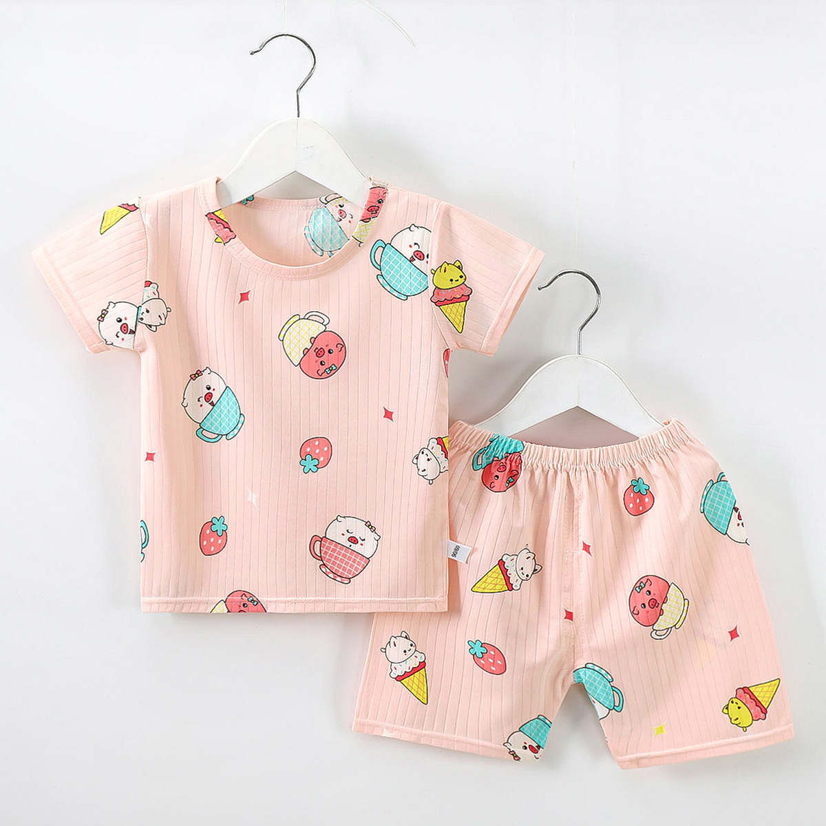 2023 어린이 여름 세트 소년과 소녀 아기 반팔 반바지 세트 유아 얇은 에어컨 가정 의류스토어 가기