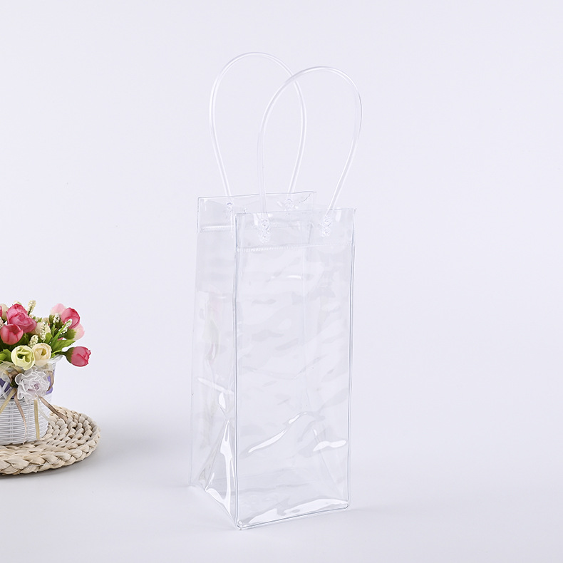 스팟 PVC 핸드백 맞춤형 두꺼운 투명 레드 와인 아이스 백 플라스틱 와인 포장 선물 핸드백