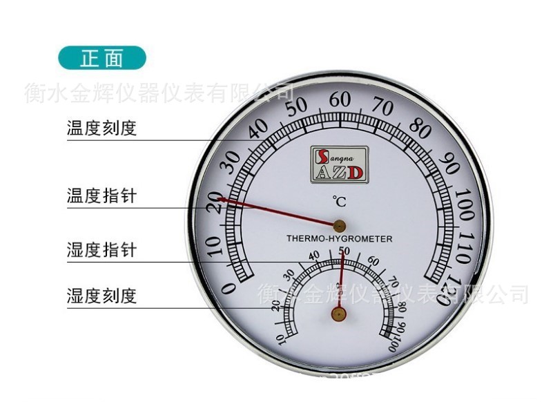 고온 습도계 A5 사우나 룸 욕실 습도계 금속 케이스 0-120 도 온도계