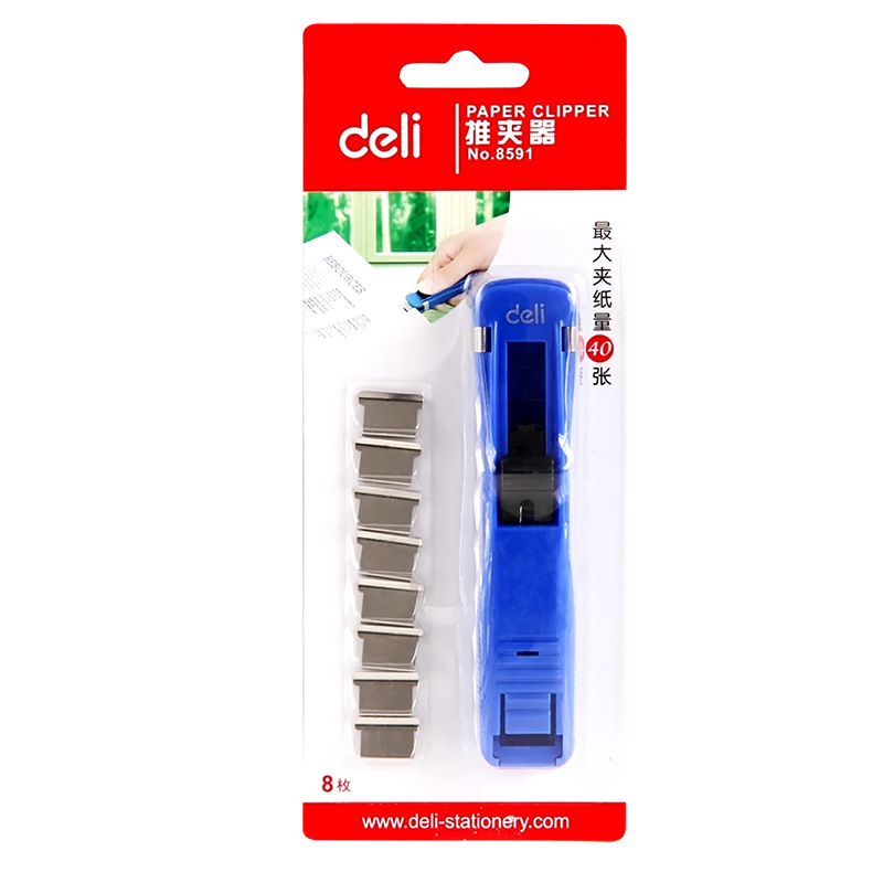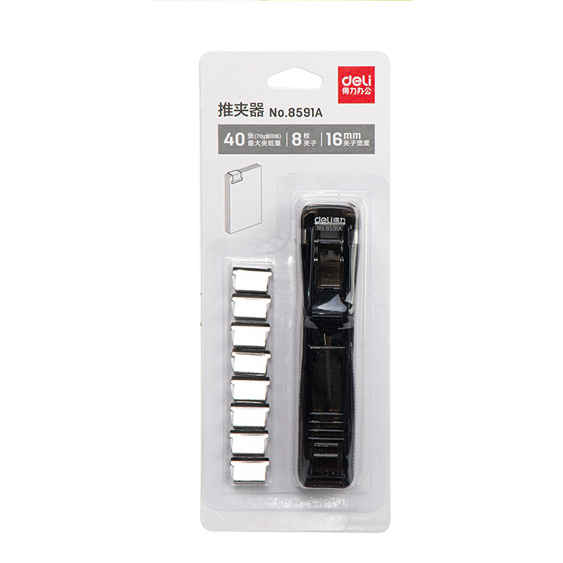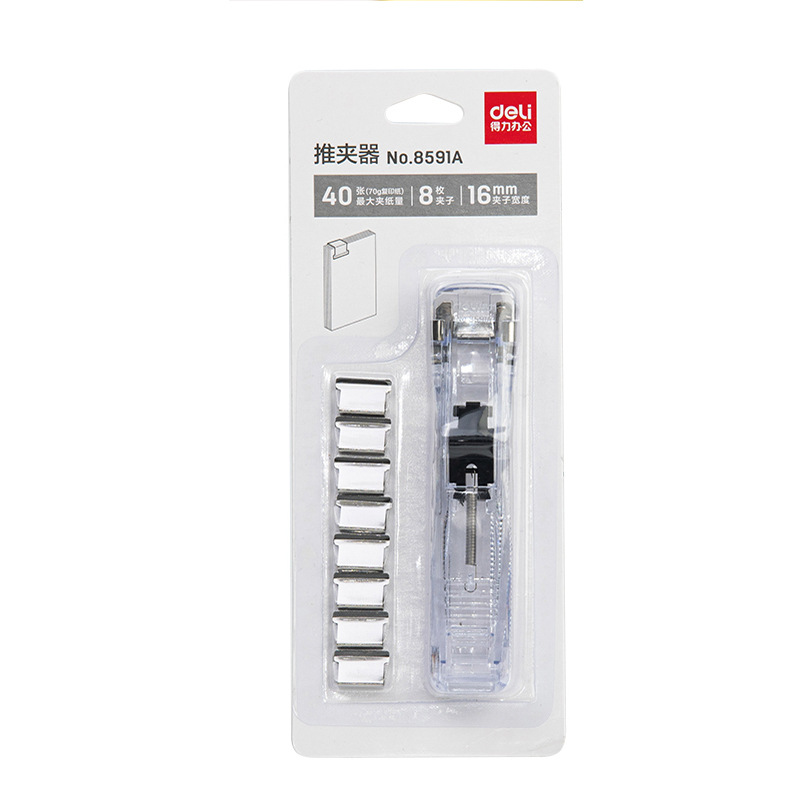 델리 8591 클립 푸셔 문서 바인딩 고정 금속 클립 보조 클립 세트 40 비파괴 바인딩