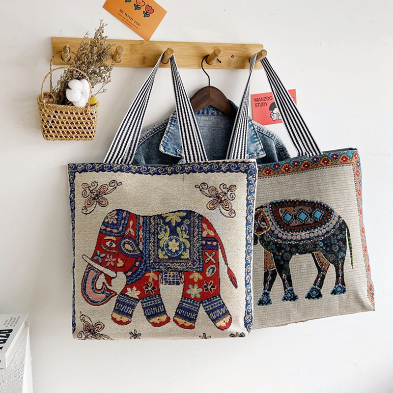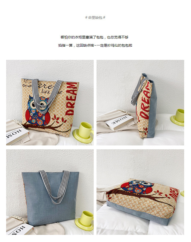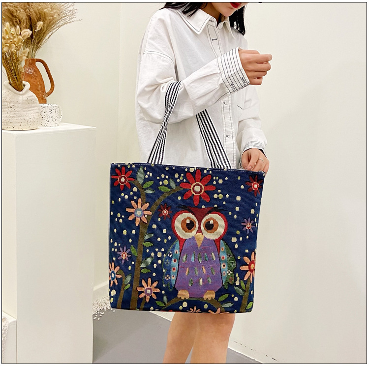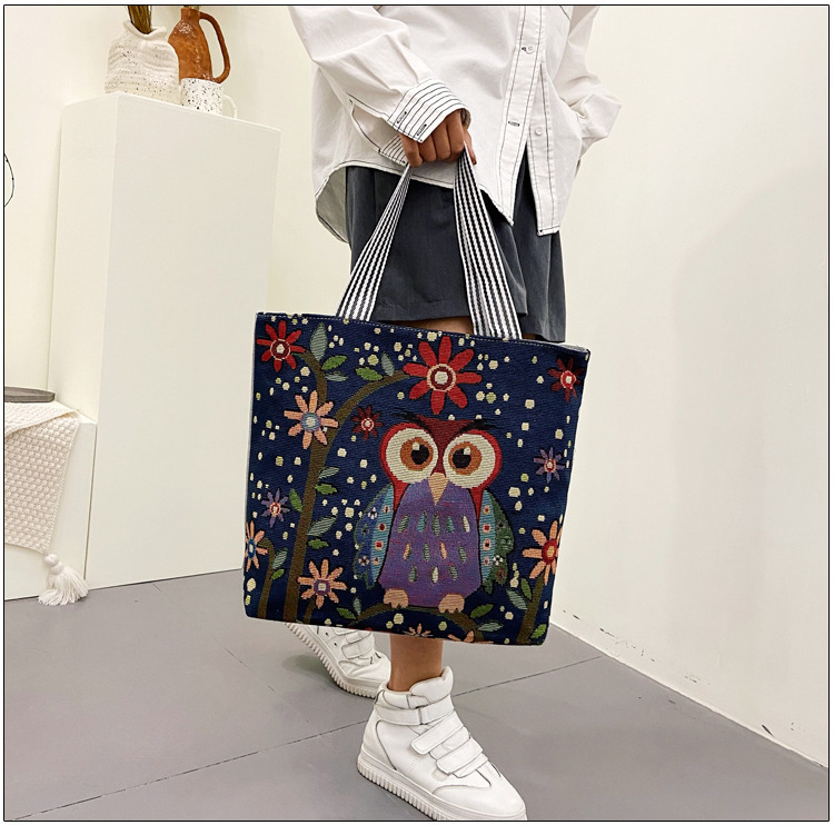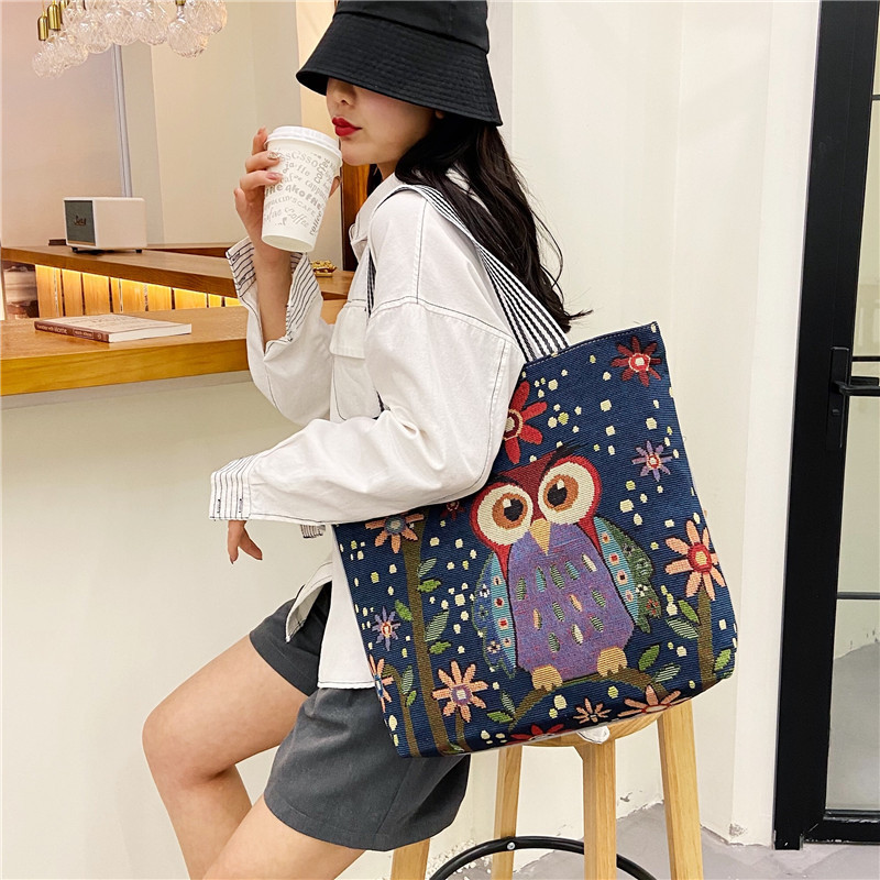 도매 토트백 신상 트렌디 에스닉 스타일 가방 쇼핑백 만화 린넨 자수 대용량 가방스토어 가기