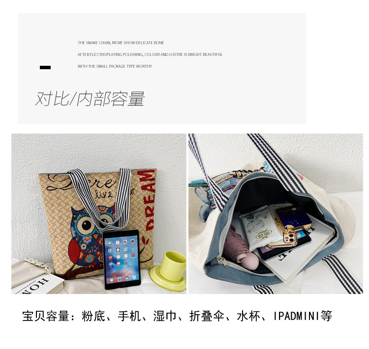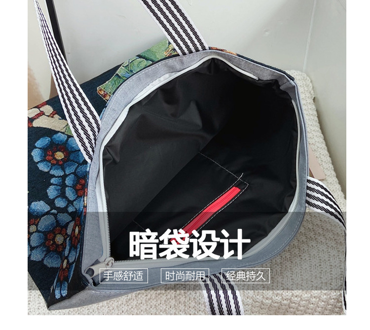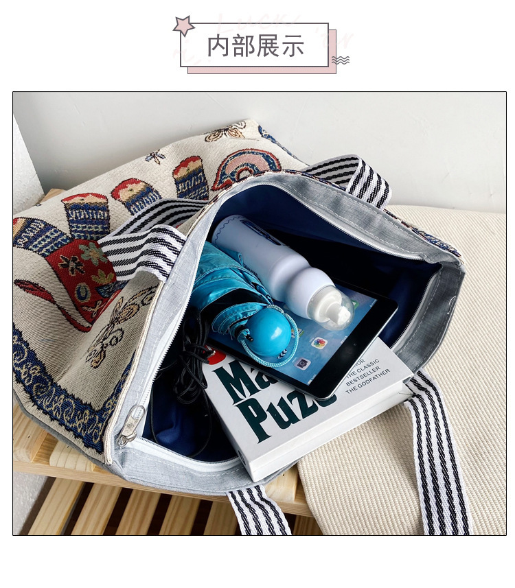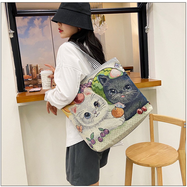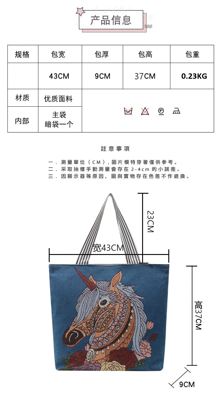 도매 토트백 신상 트렌디 에스닉 스타일 가방 쇼핑백 만화 린넨 자수 대용량 가방스토어 가기