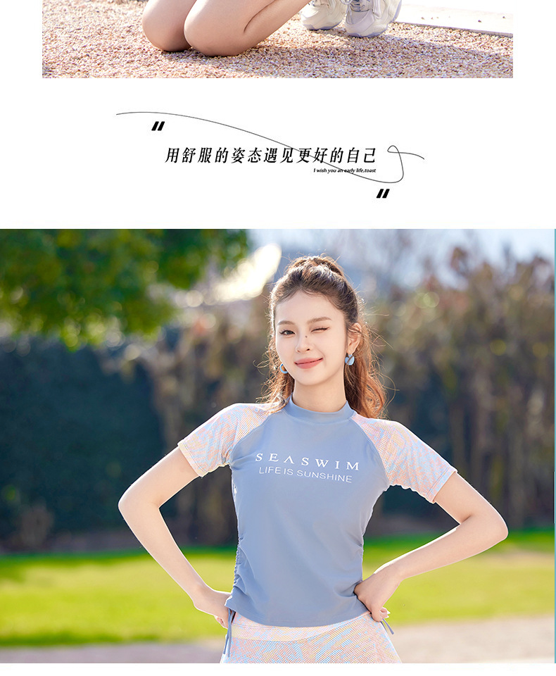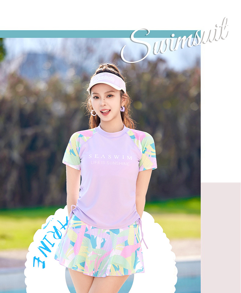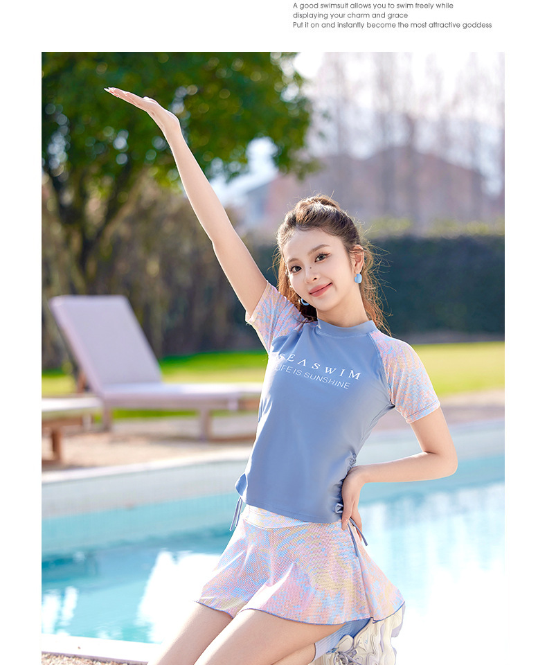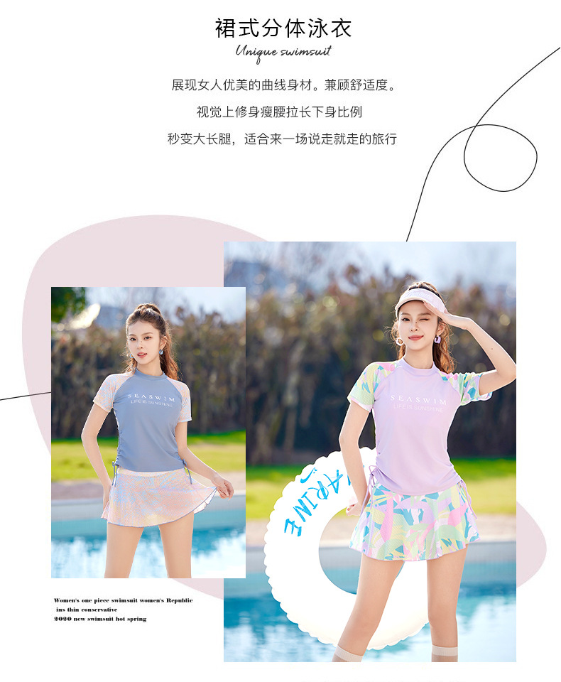 새로운 스포츠 스타일의 여성용 분리형 수영복, 보수적인 온천 수영복, 배를 가리는 한국 스타일의 슬림하고 소녀스러운 수영복스토어 가기