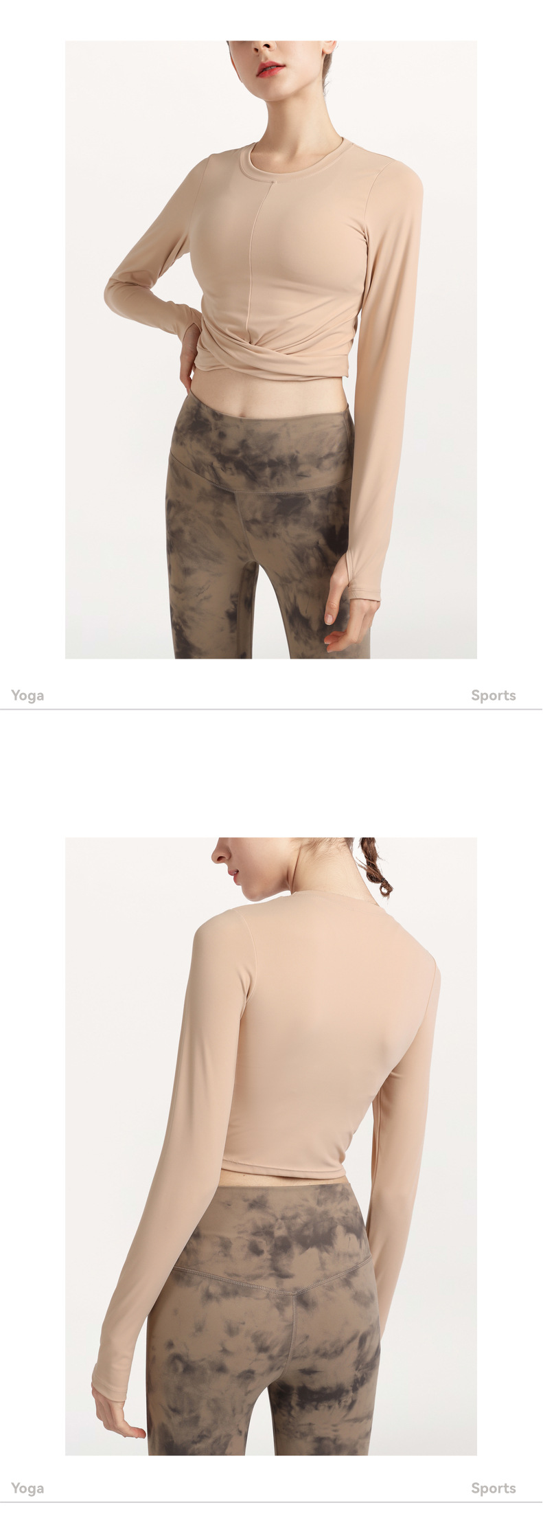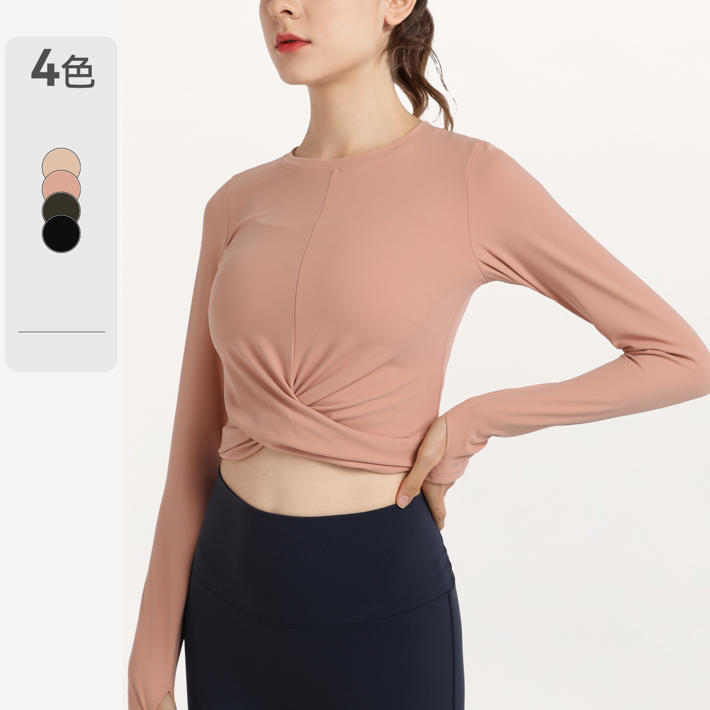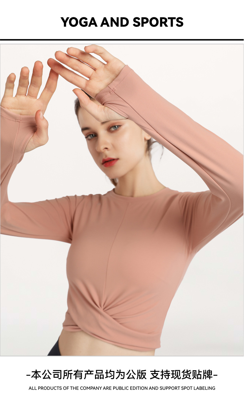 秋冬欧美气质裸感瑜伽服运动长袖t恤跑步休闲紧身套指健身服上衣스토어 가기