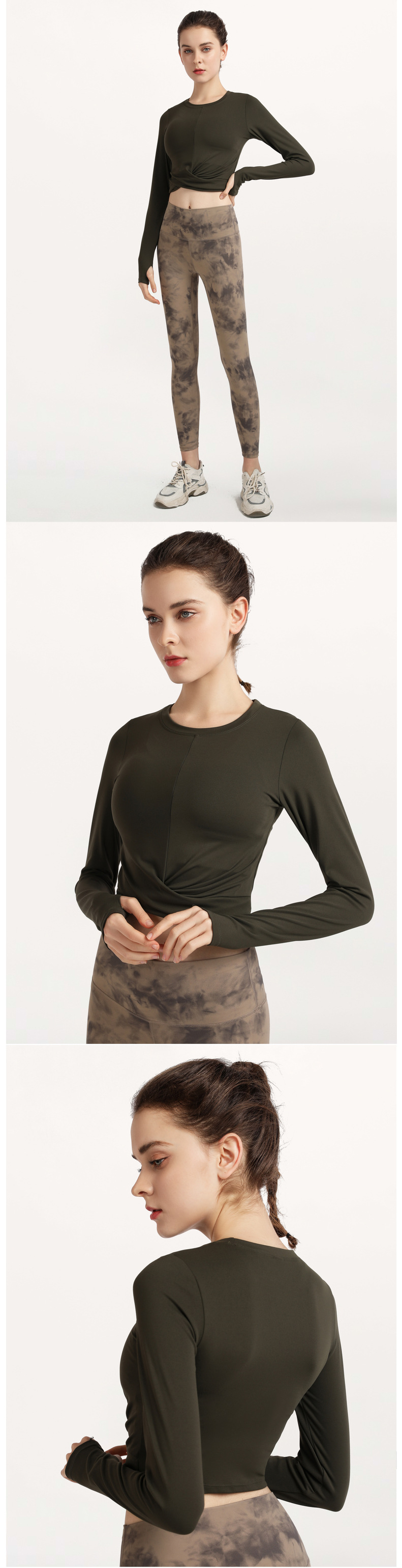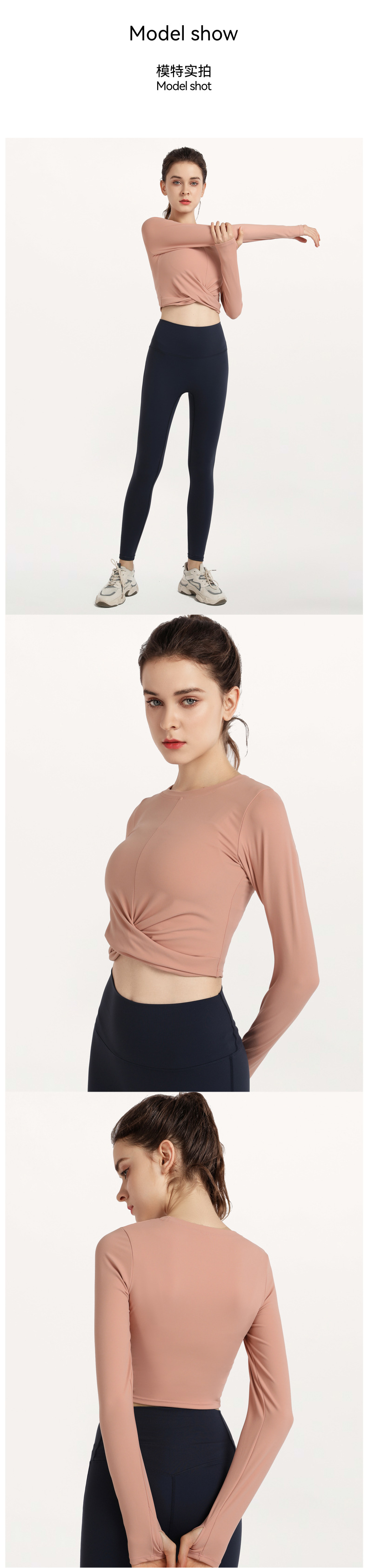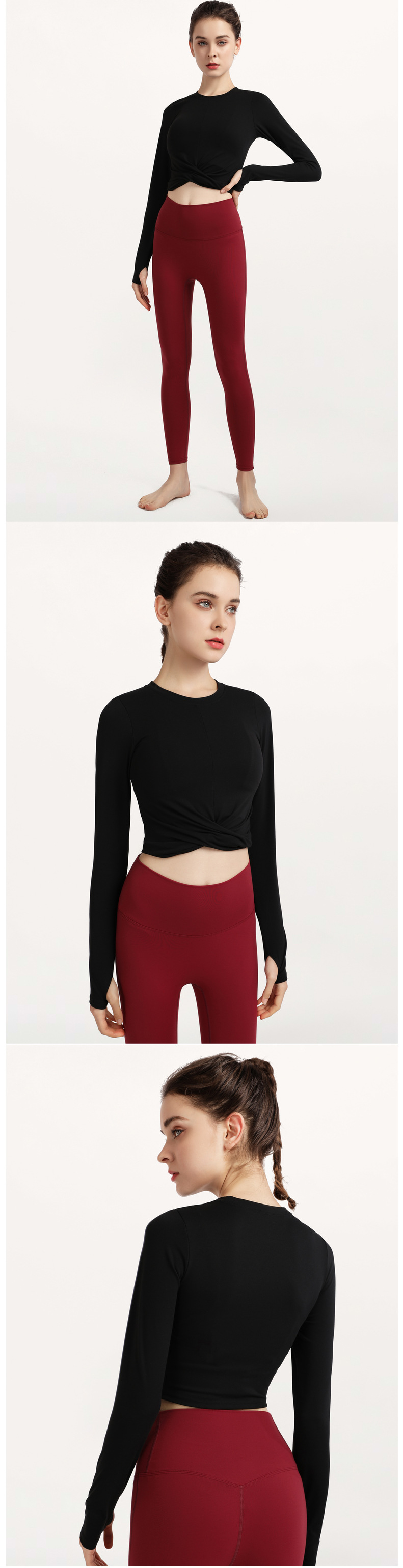秋冬欧美气质裸感瑜伽服运动长袖t恤跑步休闲紧身套指健身服上衣스토어 가기