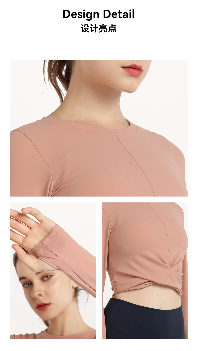 秋冬欧美气质裸感瑜伽服运动长袖t恤跑步休闲紧身套指健身服上衣