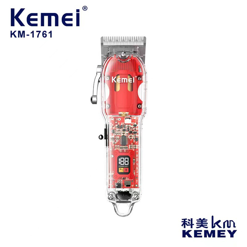 Kemei 헤어 클리퍼 KM-1761 투명 바디 커터 헤드 조절 USB 고속 충전 고출력 헤어 살롱 전문 전기 클리퍼