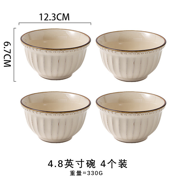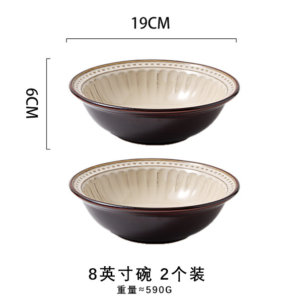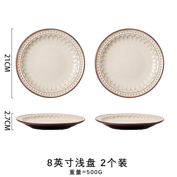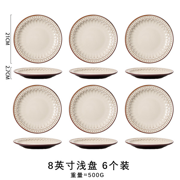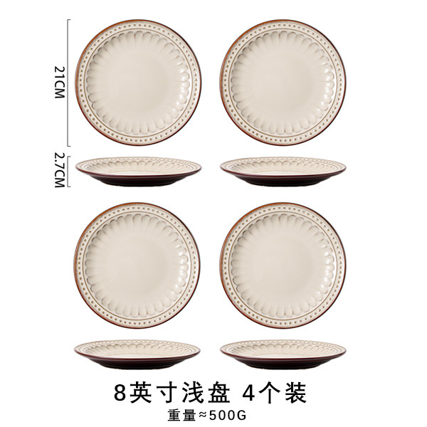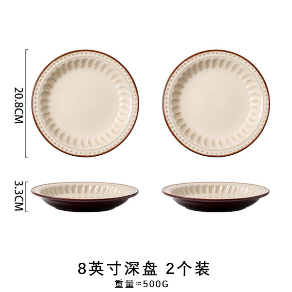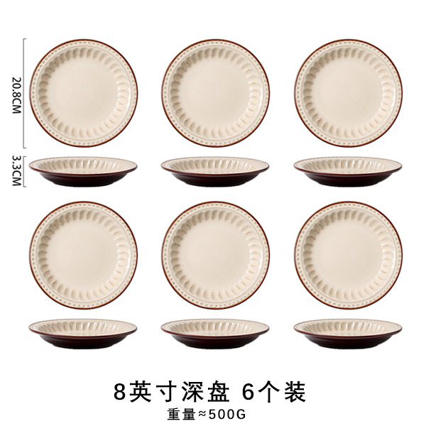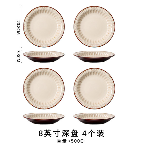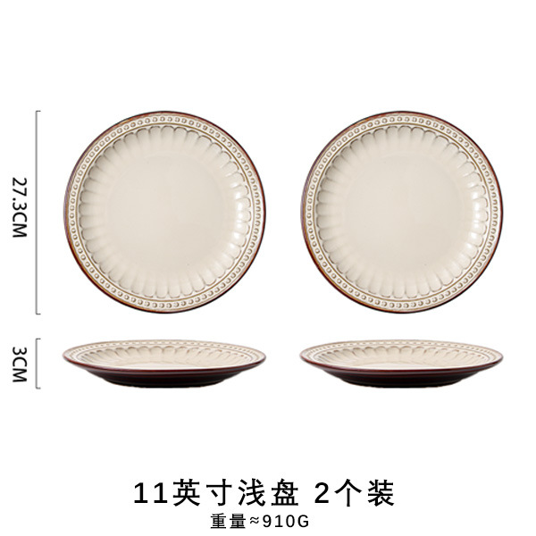 바이룬 유럽풍 레트로 양각 식기 세트 세라믹 그릇 접시 고급 레트로 스타일 언더글레이즈 컬러