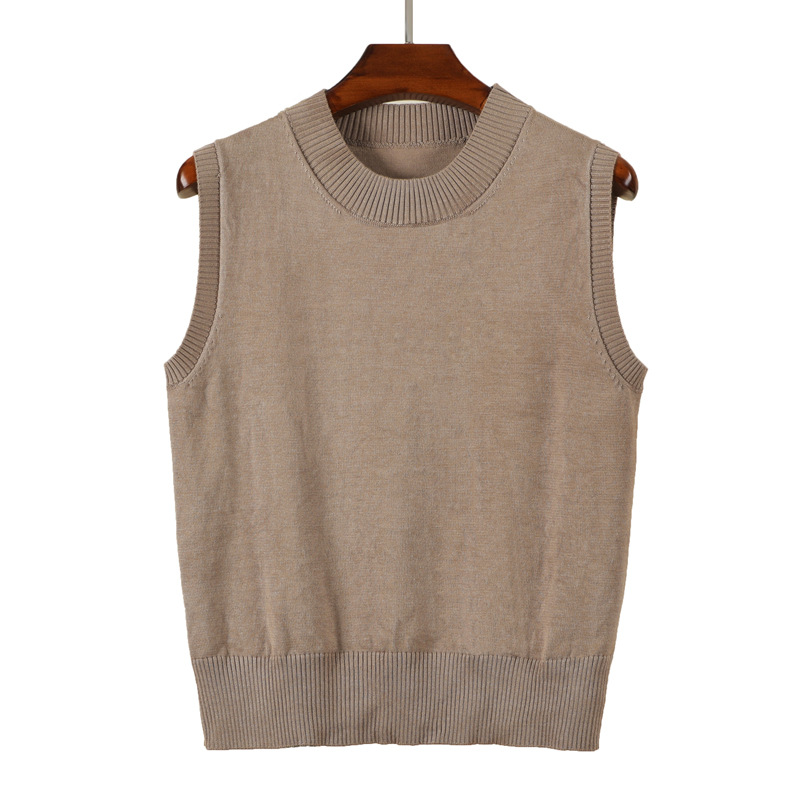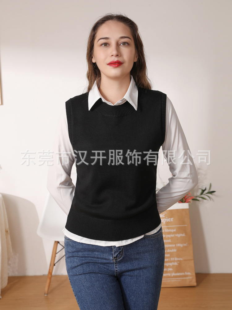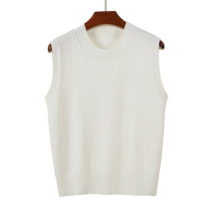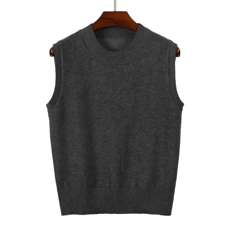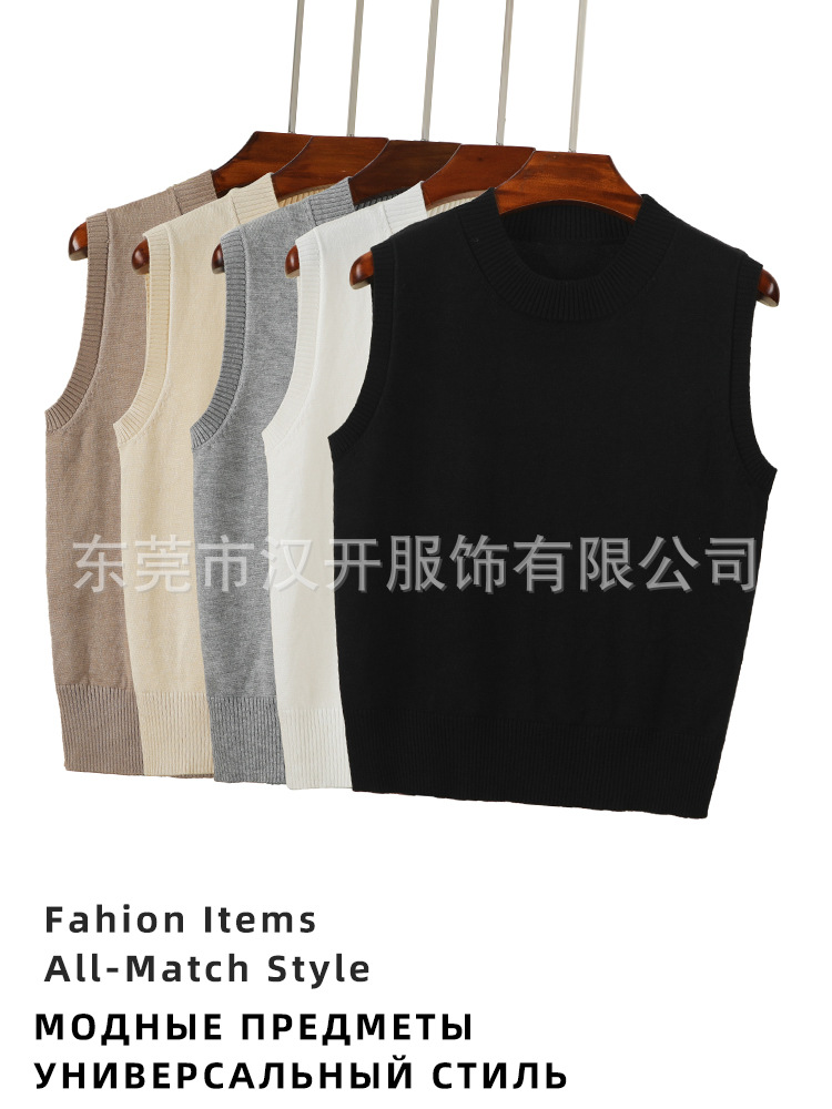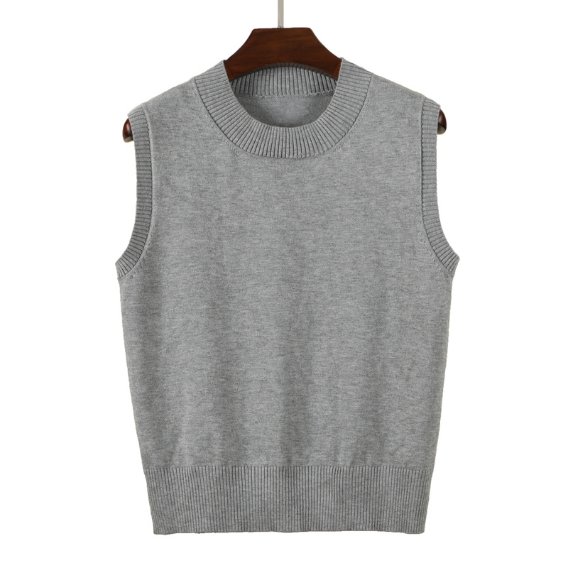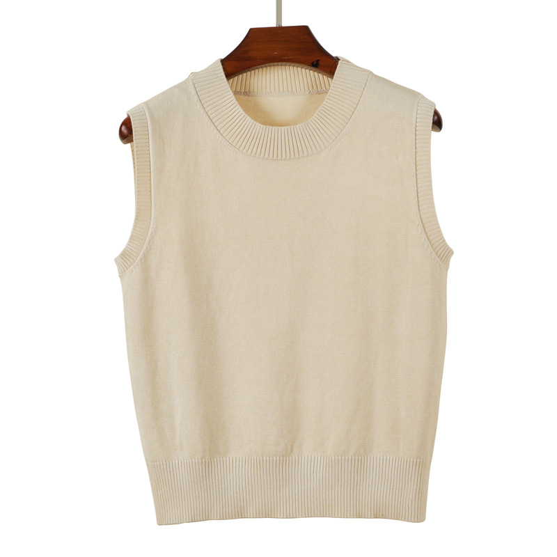 2025 라운드넥 유럽산 면 의류 상의 단색 여성 니트 조끼 레이어드 봄 가을 스웨터 조끼 여성복스토어 가기