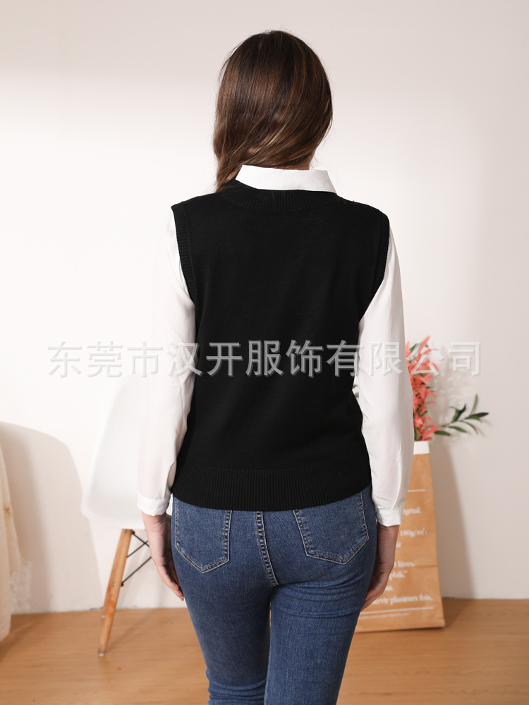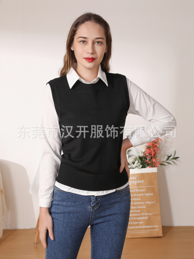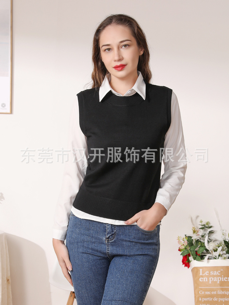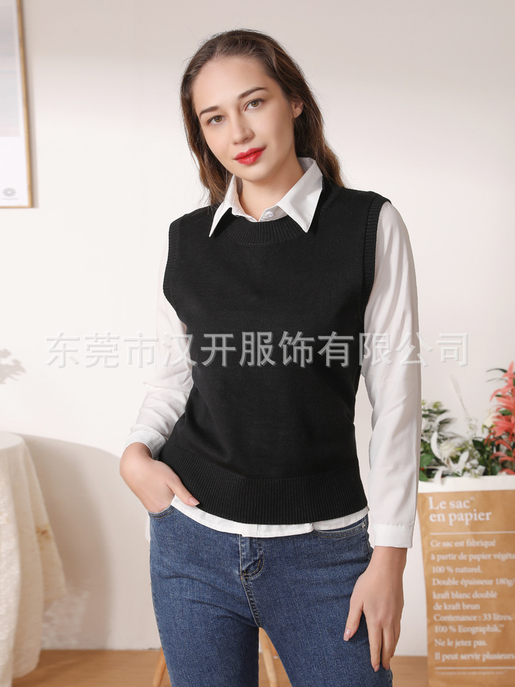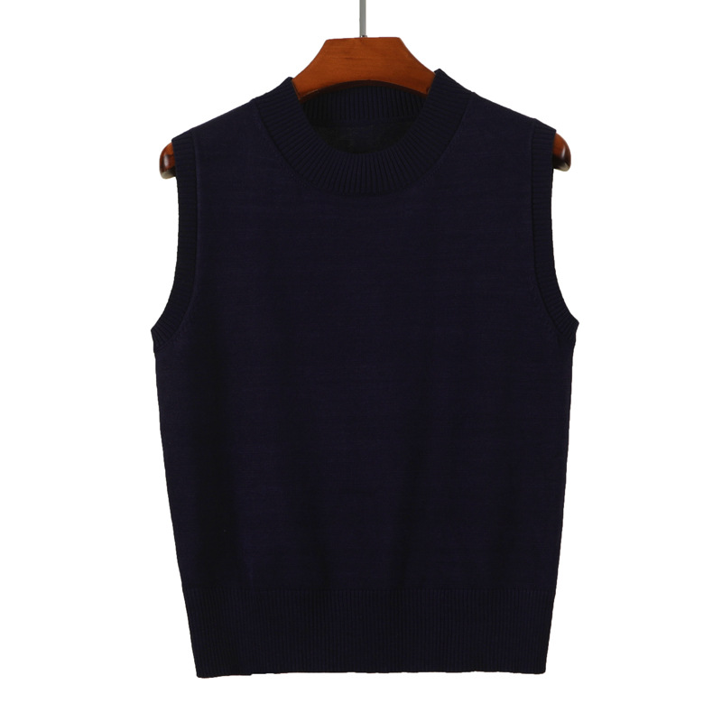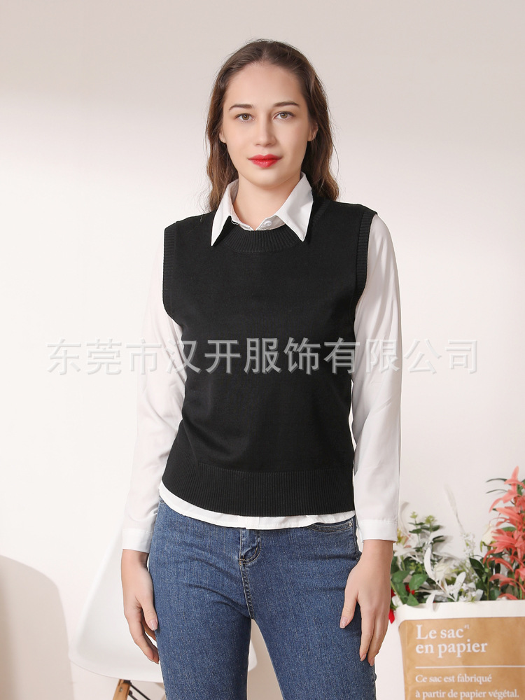 2025 라운드넥 유럽산 면 의류 상의 단색 여성 니트 조끼 레이어드 봄 가을 스웨터 조끼 여성복스토어 가기