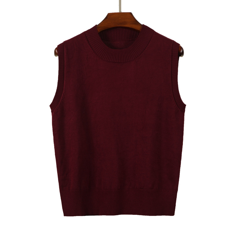 2025 라운드넥 유럽산 면 의류 상의 단색 여성 니트 조끼 레이어드 봄 가을 스웨터 조끼 여성복