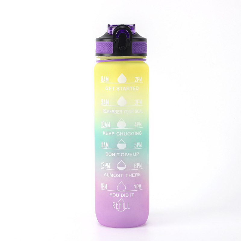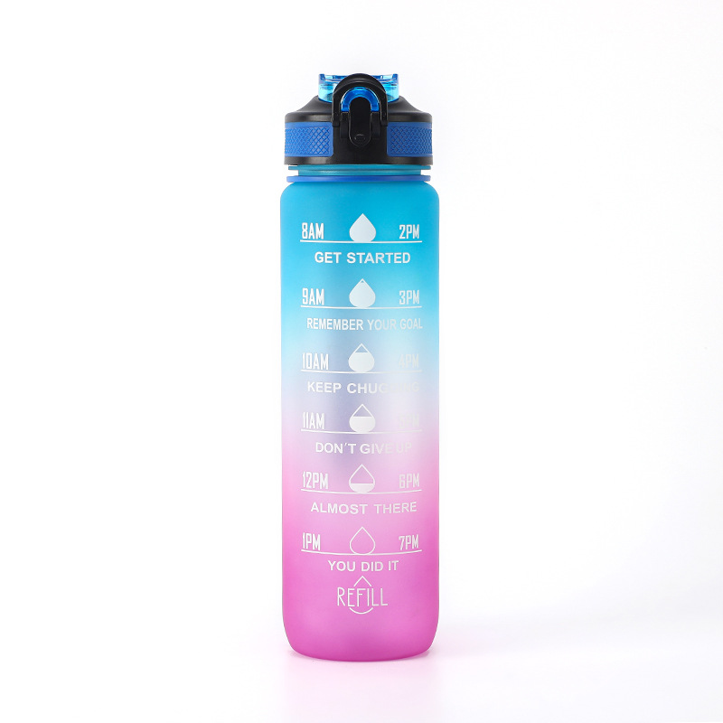 아마존 패션 스페이스 컵 휴대용 끈 바운스 뚜껑 그라데이션 컵 1000ml 야외 스포츠 주전자