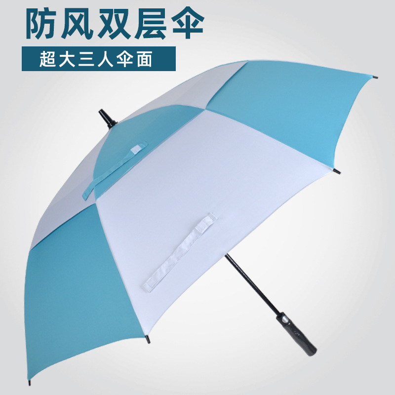 골프 우산 남성과 여성의 긴 손잡이 큰 우산 폭풍 특수 대형 연결 이중층 바람 방지 실버 접착제 태양 보호 우산