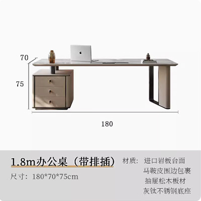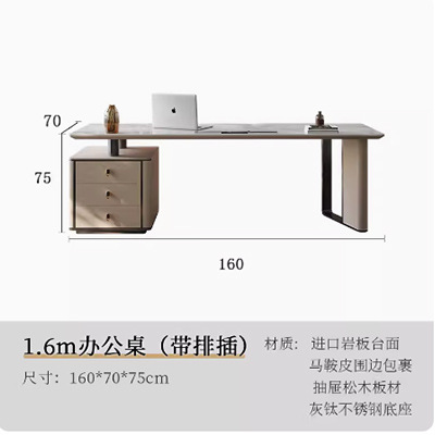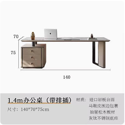 가벼운 럭셔리 록 보드 안장 가죽 책상 북유럽 연구 사무실 책상 및 의자 이탈리아 미니멀리스트 컴퓨터 책상 스테인레스 스틸 필기 책상스토어 가기