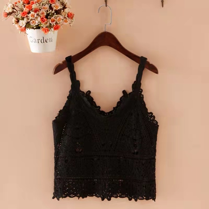 봄 여름 신상 니트 조끼, 패셔너블한 한국식 캐주얼하고 달콤한 베이직 블랙 레이스 가슴 시스루 하의스토어 가기