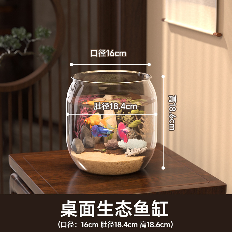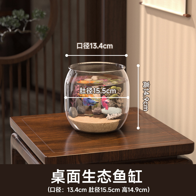 마이크로 풍경 수조 투명 플라스틱 사무실 작은 조경 데스크탑 생태 거북이 수조 홈 장식품 금붕어 수조스토어 가기