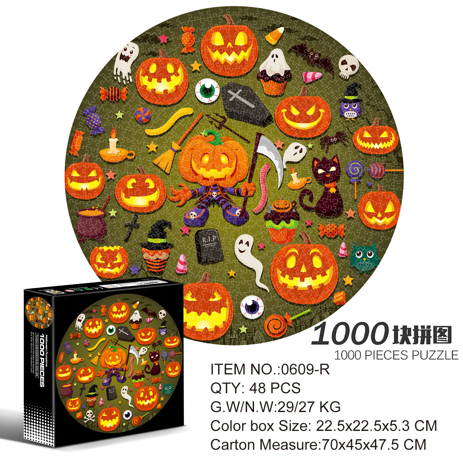 • 호박 할로윈 1000 조각 라운드 퍼즐-