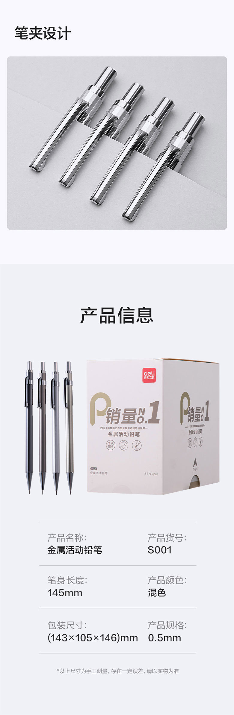 델리 S001 금속 샤프 0.5 초등학생 활동 연필 연속 리필 유치원 도매스토어 가기