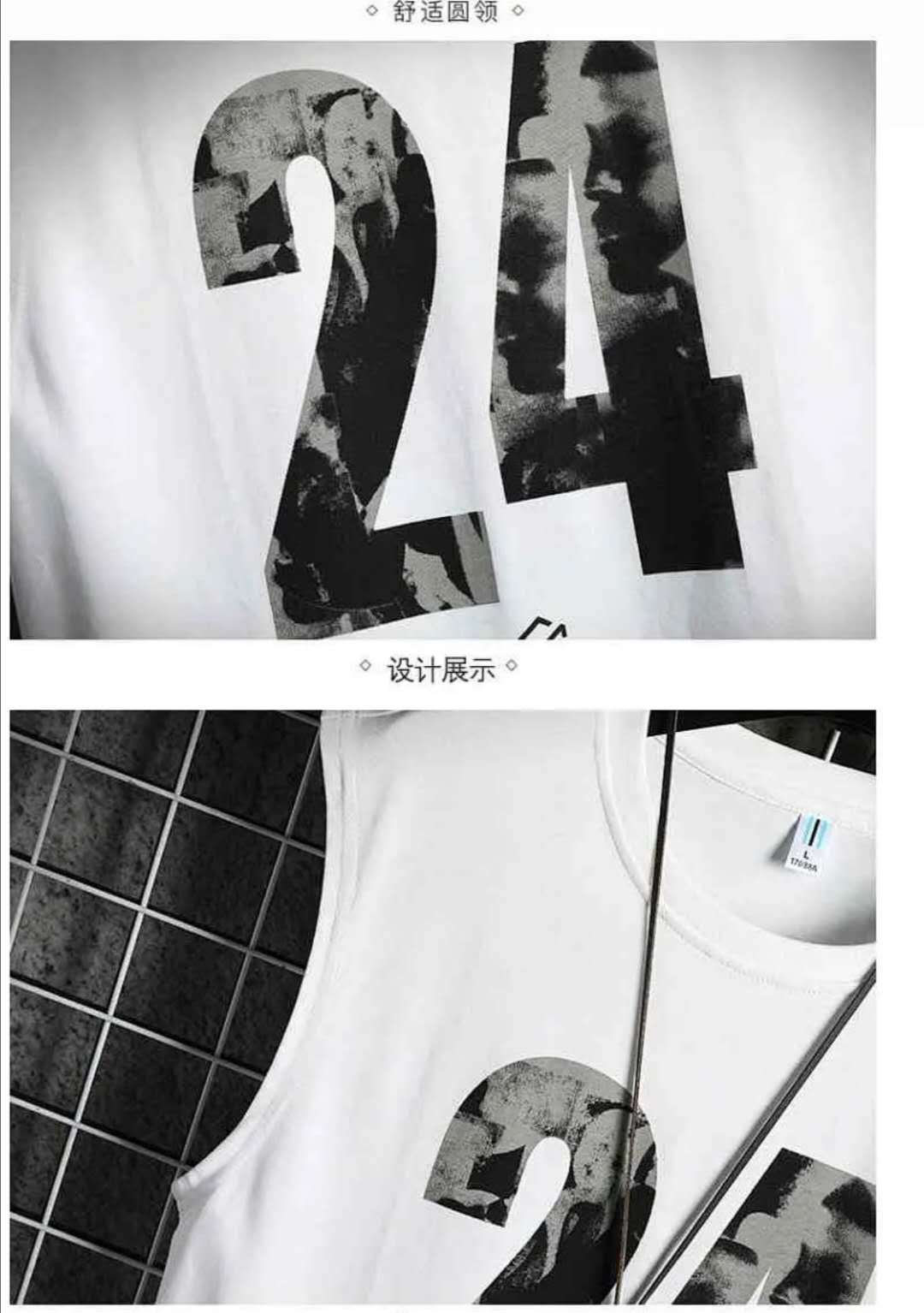 2024 새로운 남성 ins 스포츠 조끼 No. 24 저지 스포츠 농구 유니폼 민소매 티셔츠 조끼 조끼 언더 셔츠