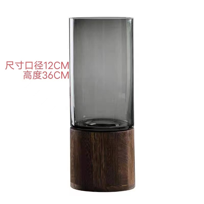 북유럽 인 창조적 인 유리 꽃병 둥근 나무 기초 거실 식탁 물 꽃 배열 장식 장식품 도매