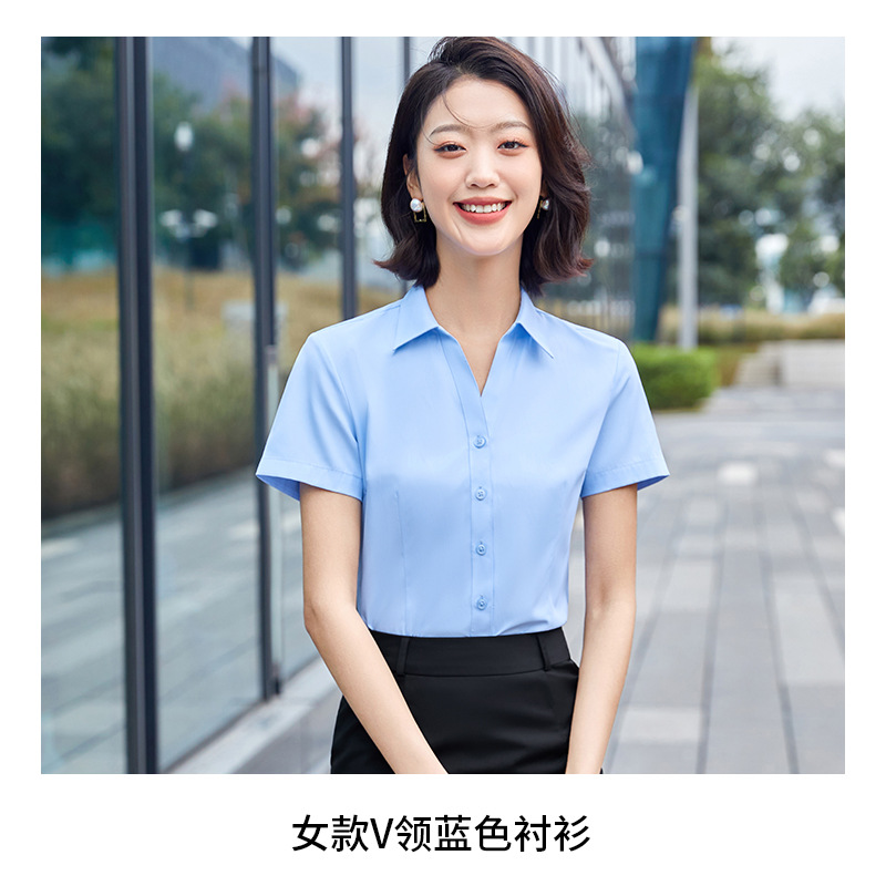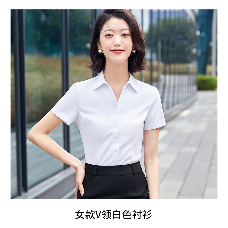 화이트 셔츠 여성용 반팔 2023 여름 얇은 한국 스타일 슬림핏 슬리밍 프로페셔널 원피스 V넥 셔츠 여성용스토어 가기