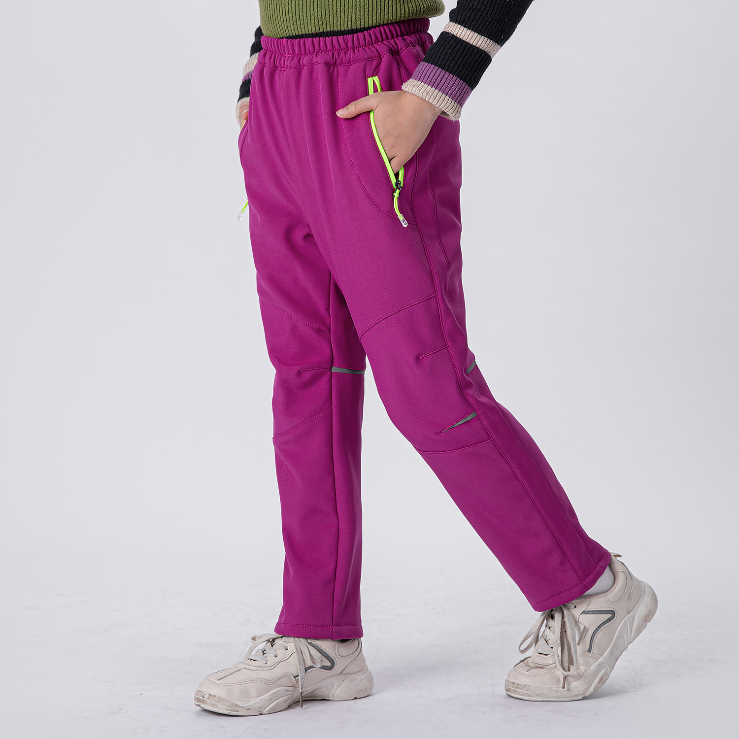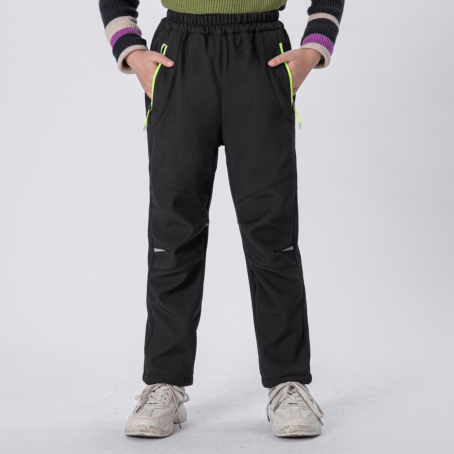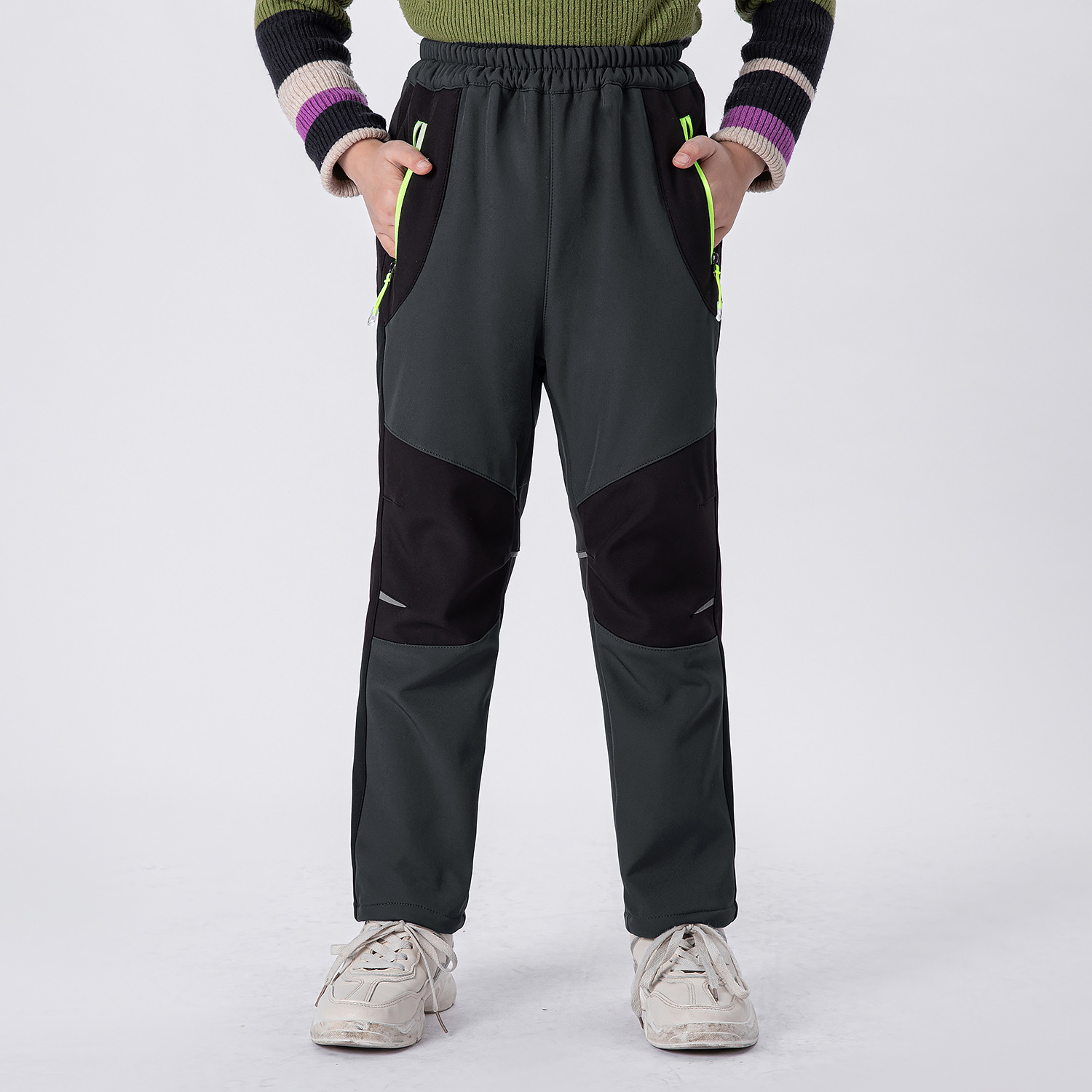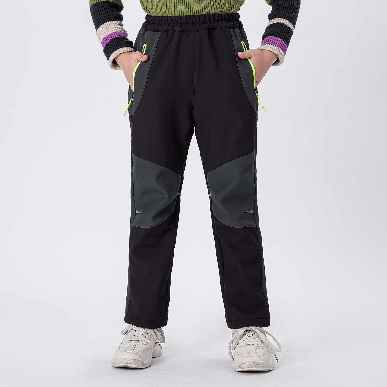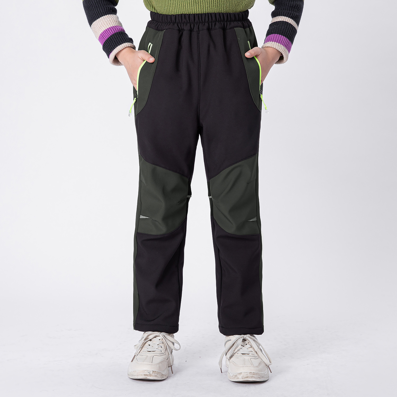 2021 가을과 겨울 새로운 소년 소녀 기모 따뜻하고 편안한 야외 등산 바지 충전 바지 소프트 쉘 바지