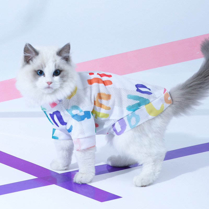 고양이 옷 안티 헤어 귀여운 조끼 블루 고양이 짧은 인형 봄과 가을 새끼 고양이 애완 동물 봄과 여름 얇은스토어 가기