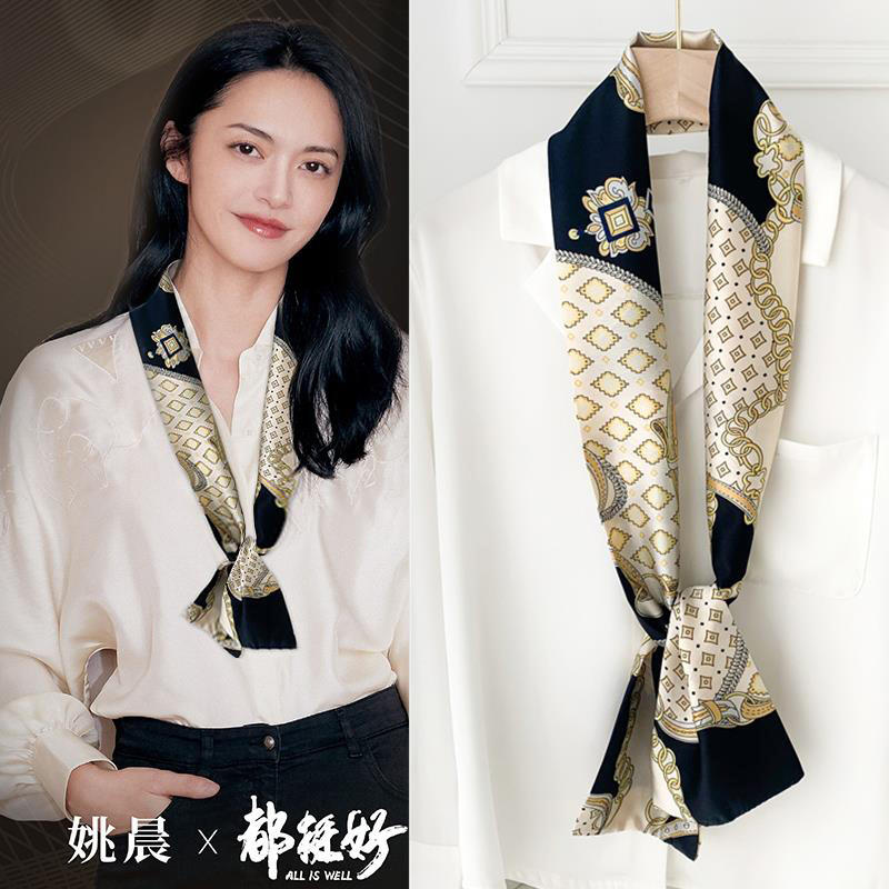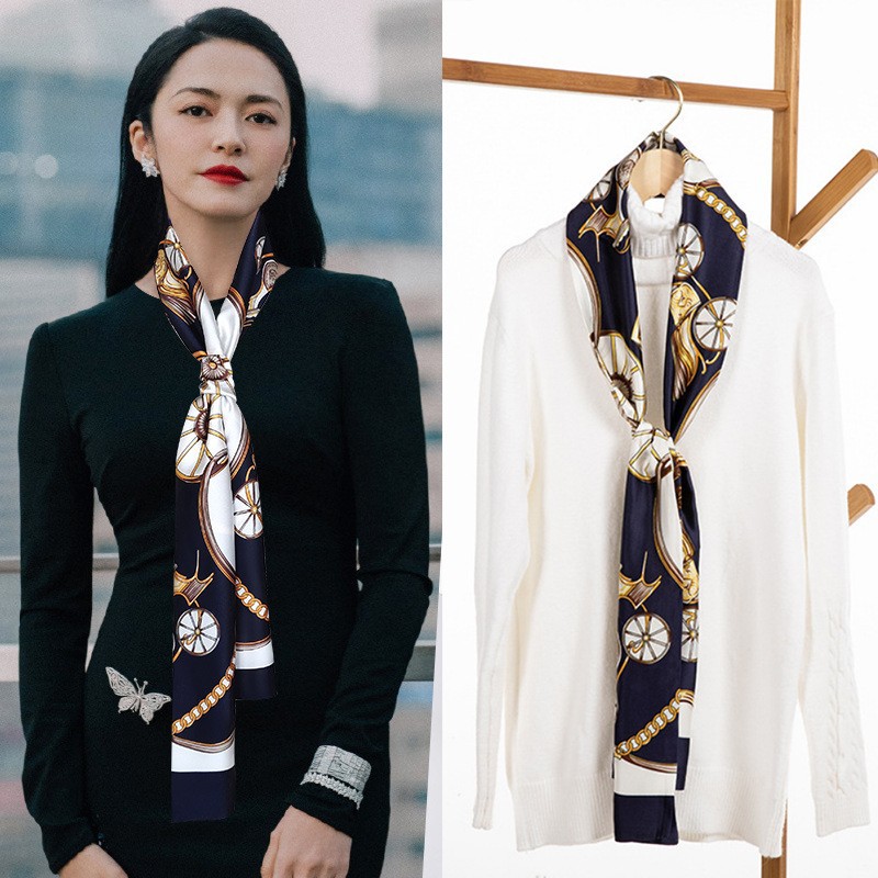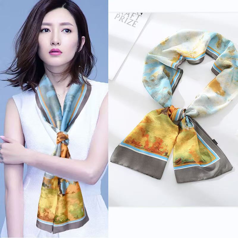 스타 같은 스타일 봄과 여름 실크 스카프 실크 작은 스카프 리본 헤어 밴드 여자의 재고 겨울 인쇄 여자의 사각 스카프스토어 가기