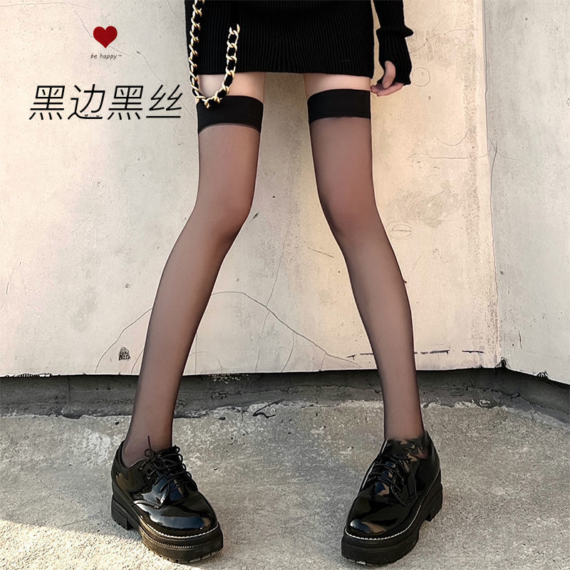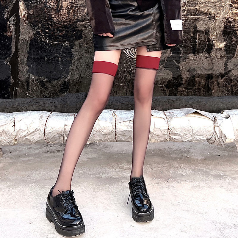 인터넷 연예인 틈새 빨간 가장자리 긴 양말 섹시한 대조 색상 검정과 빨강 바느질 검은 실크 무릎 위 양말 고층 슬리밍 허벅지 양말스토어 가기