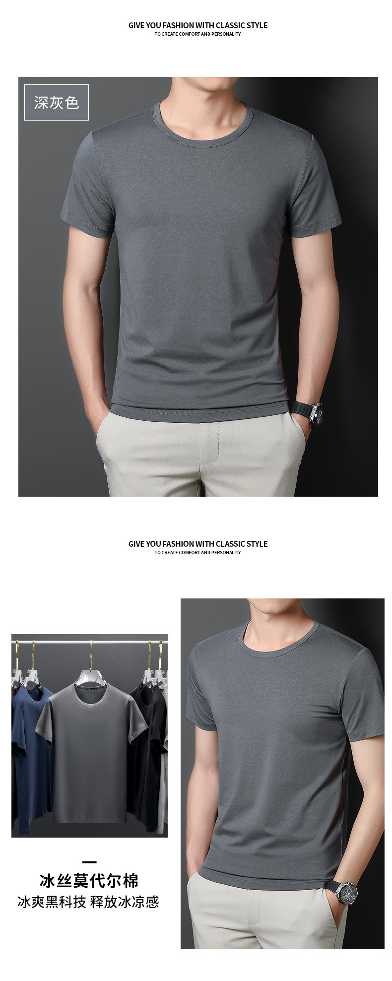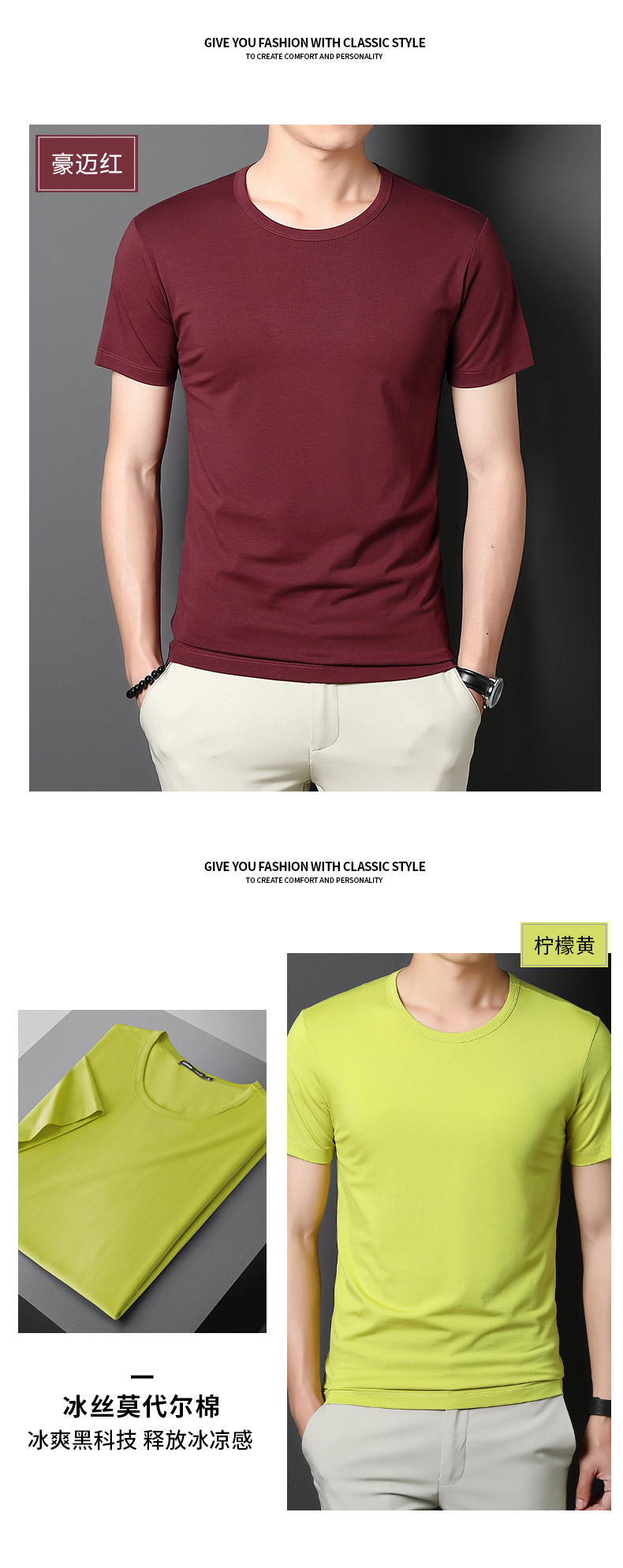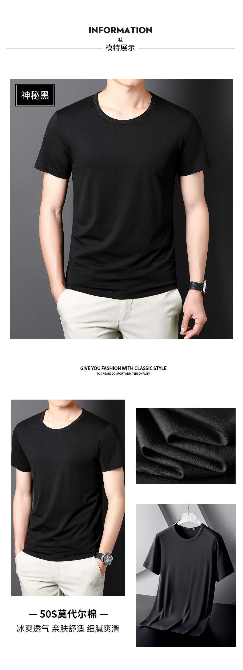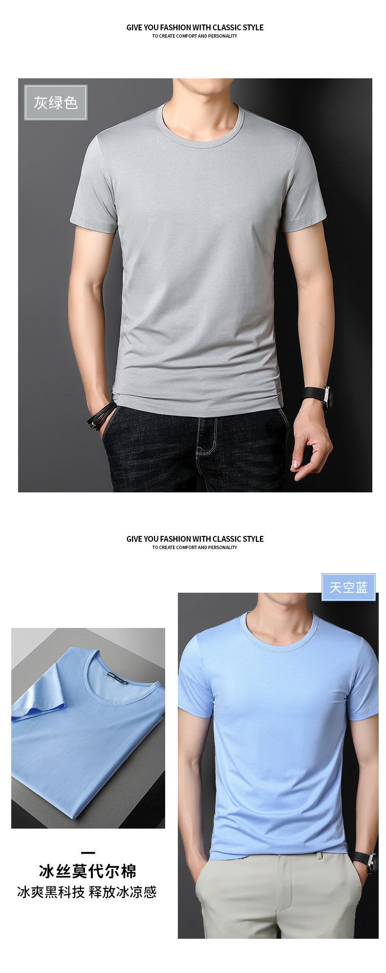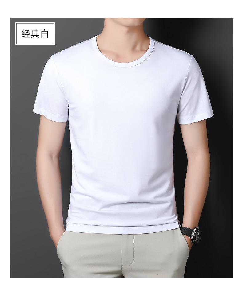 60s 모달 코튼 티셔츠 남성용 반팔 여름 얇은 얼음 실크 느낌 라운드 넥 반팔 2025 새로운 순수한 흰색 티셔츠스토어 가기