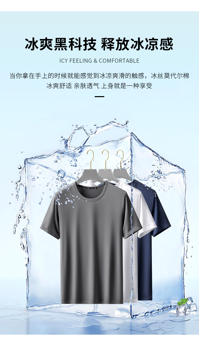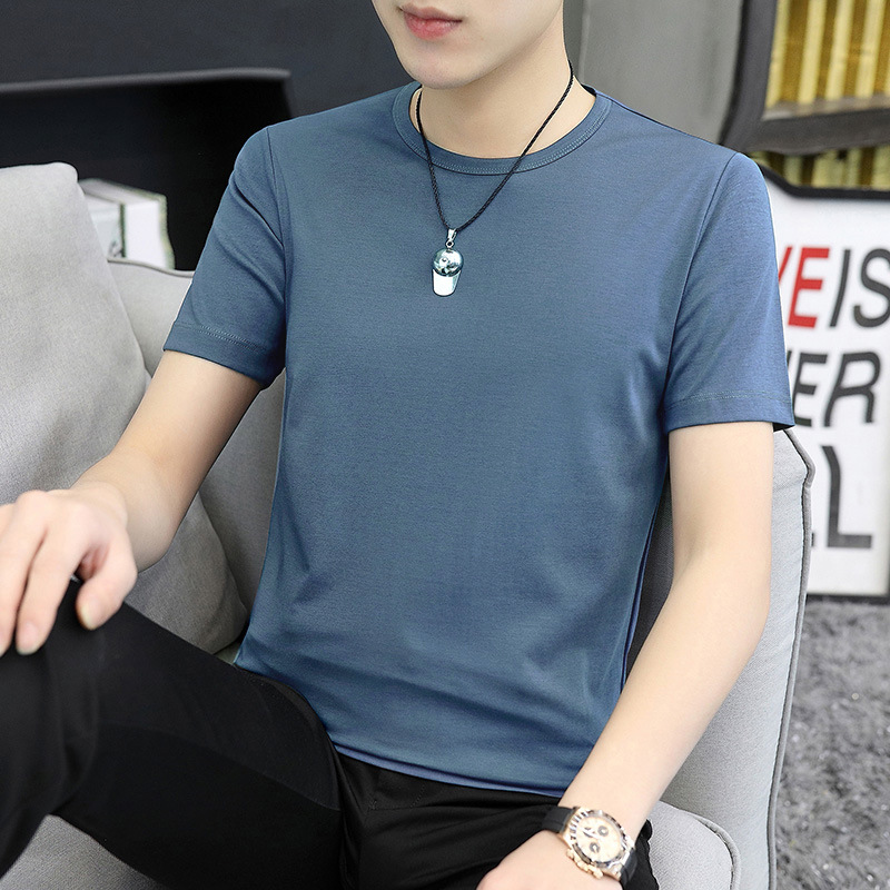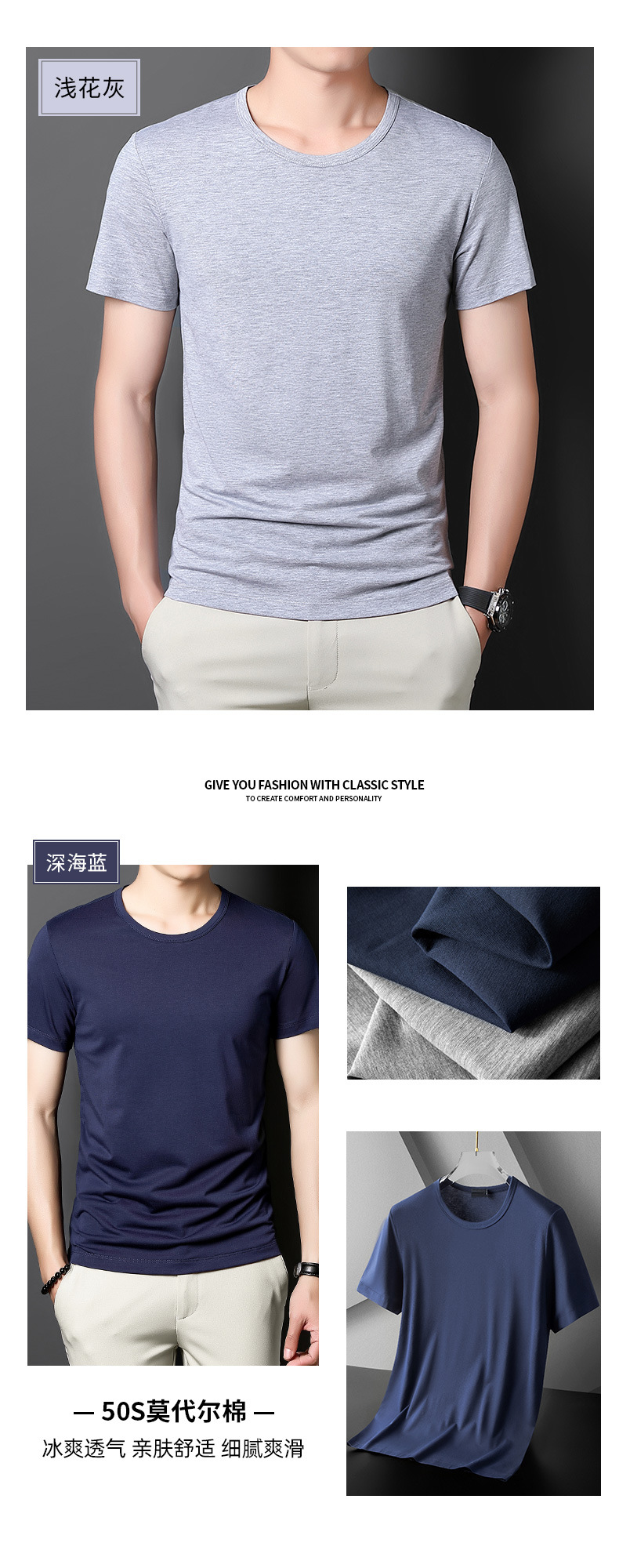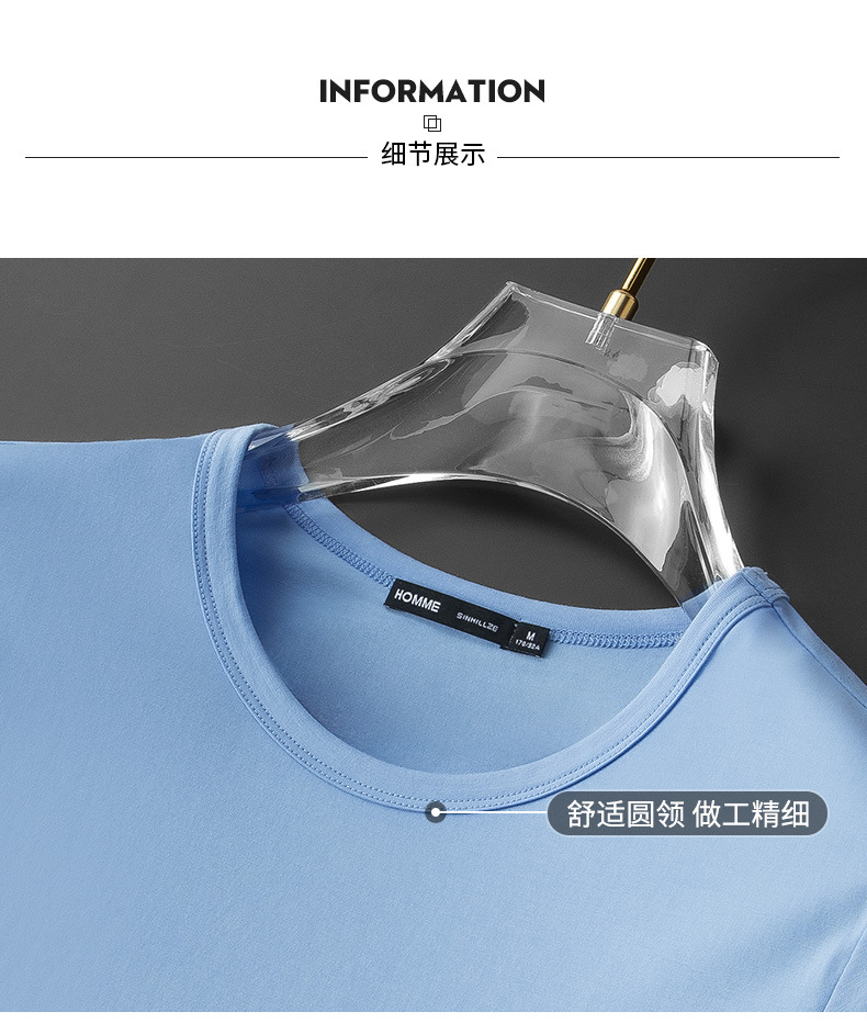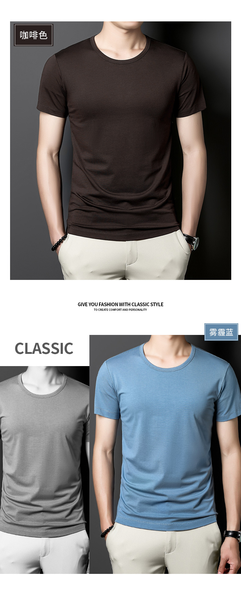 60s 모달 코튼 티셔츠 남성용 반팔 여름 얇은 얼음 실크 느낌 라운드 넥 반팔 2025 새로운 순수한 흰색 티셔츠스토어 가기