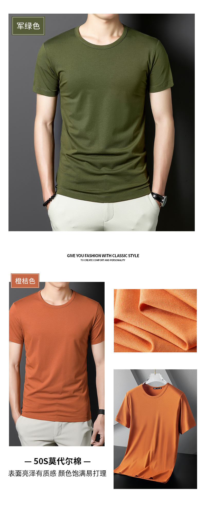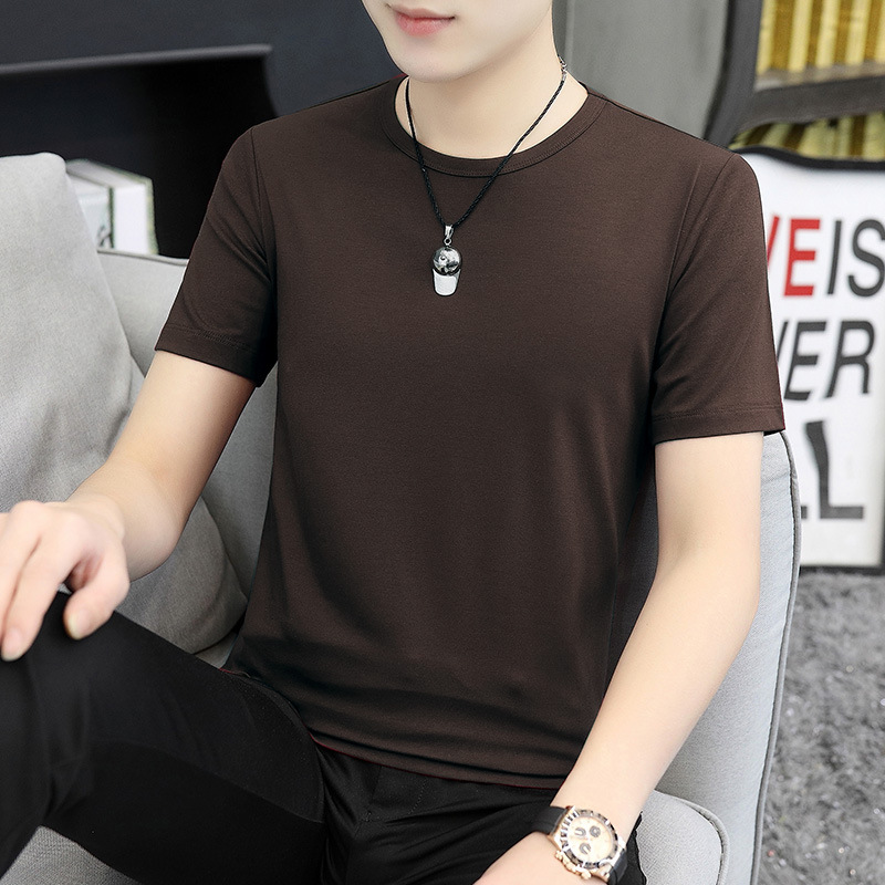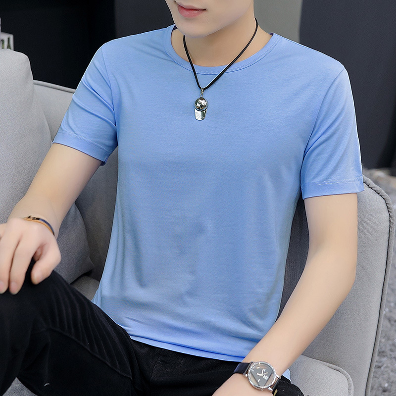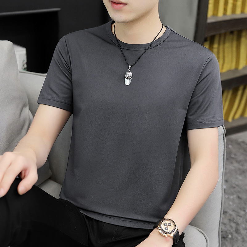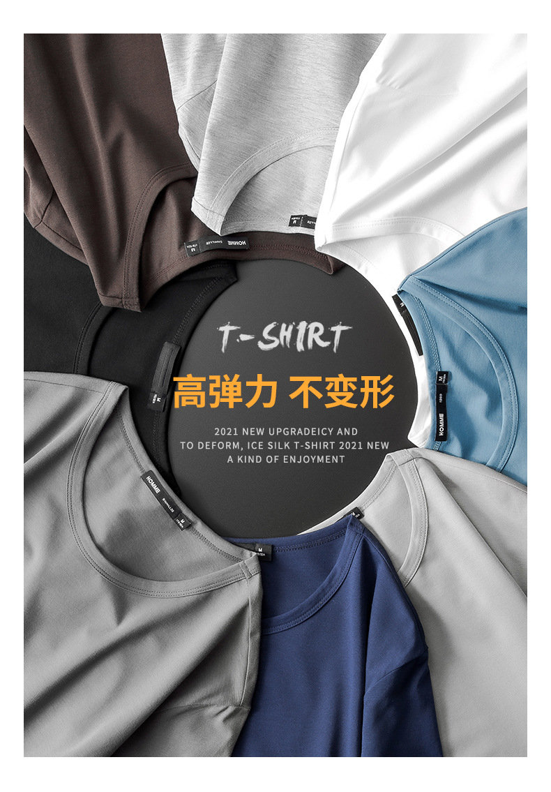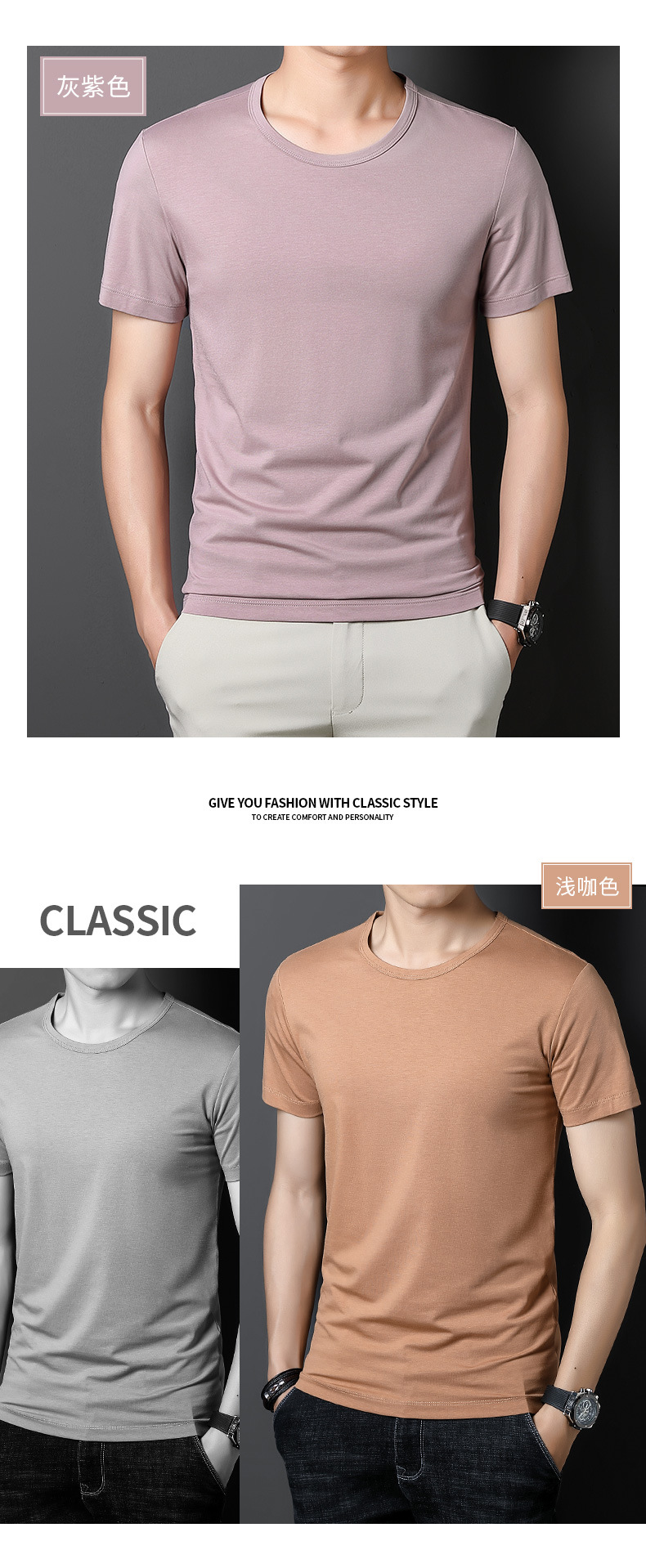 60s 모달 코튼 티셔츠 남성용 반팔 여름 얇은 얼음 실크 느낌 라운드 넥 반팔 2025 새로운 순수한 흰색 티셔츠스토어 가기