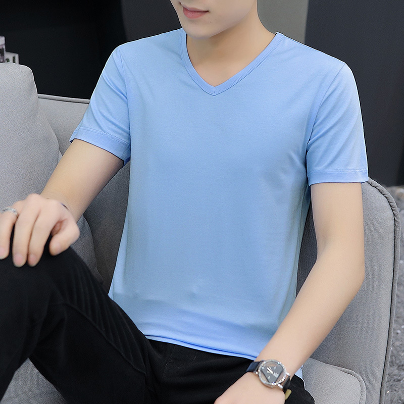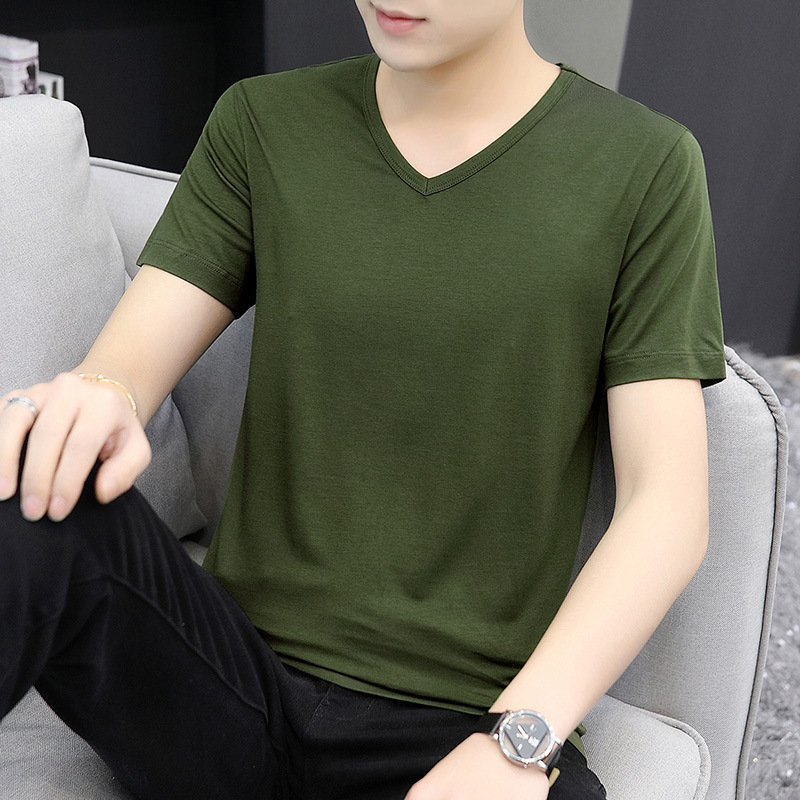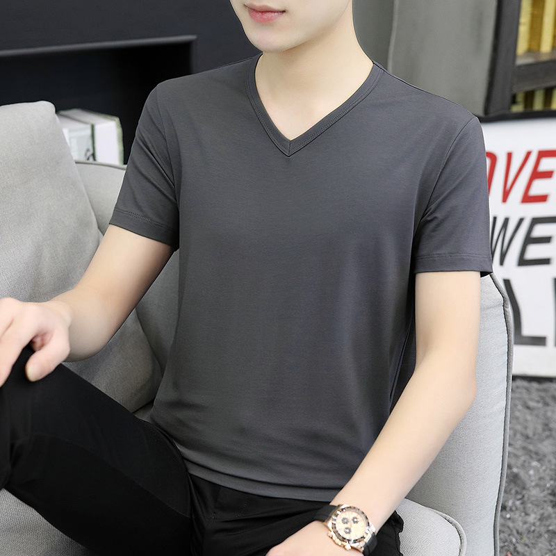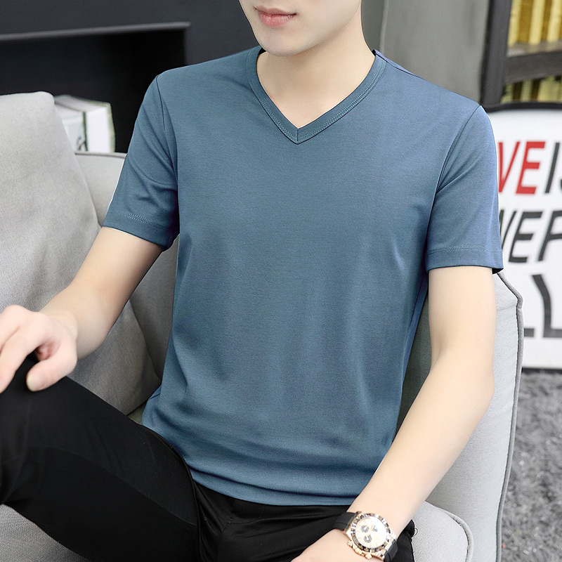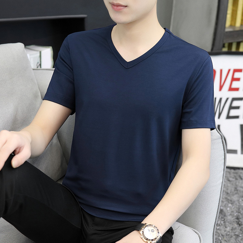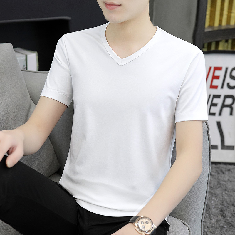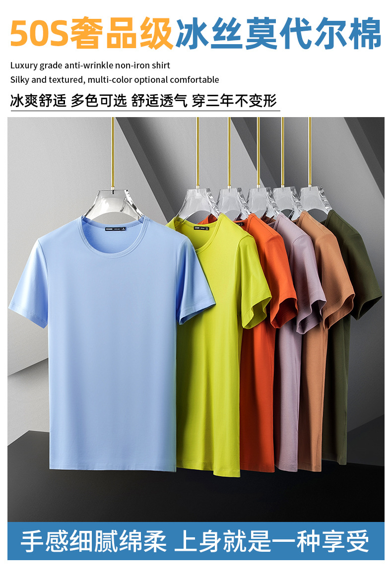 60s 모달 코튼 티셔츠 남성용 반팔 여름 얇은 얼음 실크 느낌 라운드 넥 반팔 2025 새로운 순수한 흰색 티셔츠스토어 가기