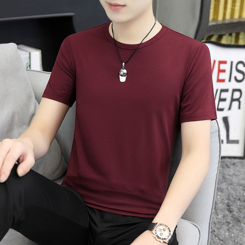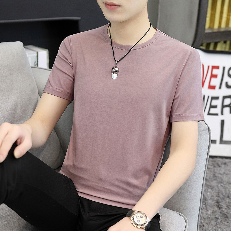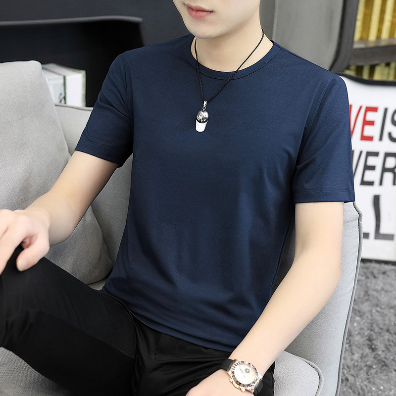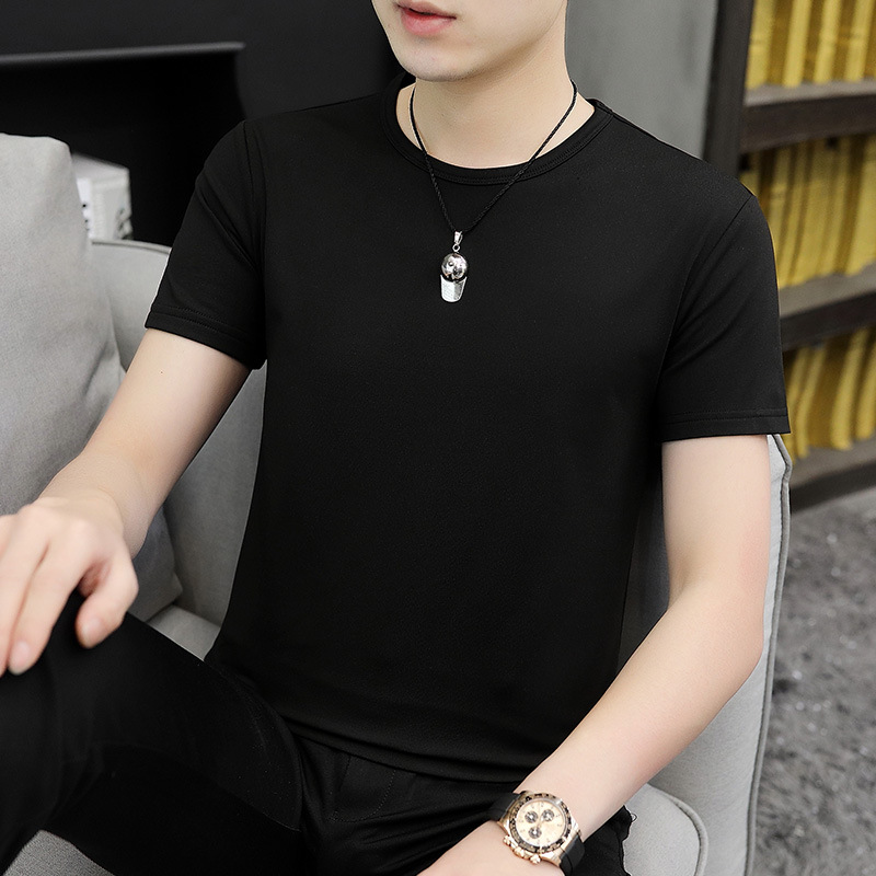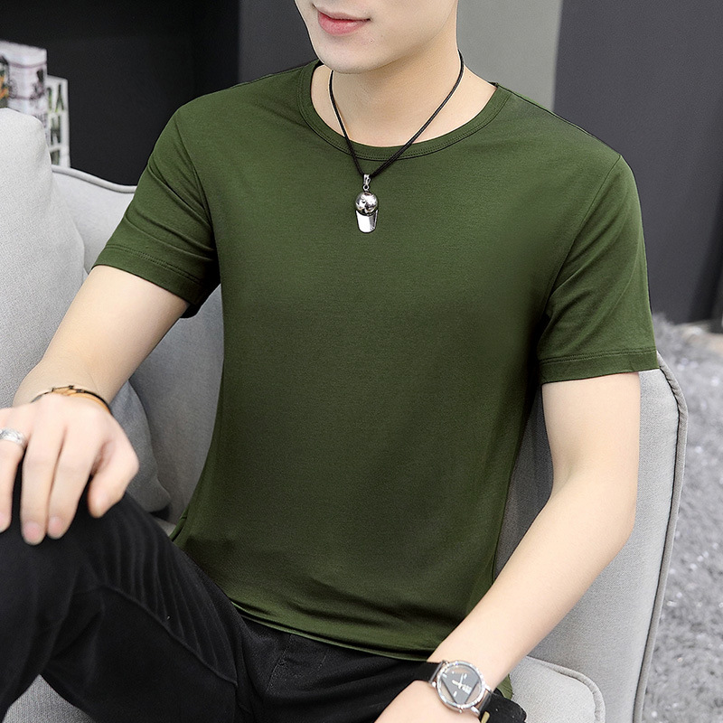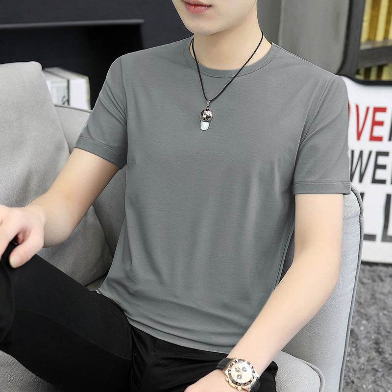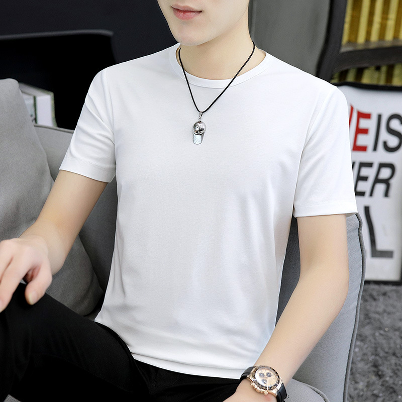 60s 모달 코튼 티셔츠 남성용 반팔 여름 얇은 얼음 실크 느낌 라운드 넥 반팔 2025 새로운 순수한 흰색 티셔츠