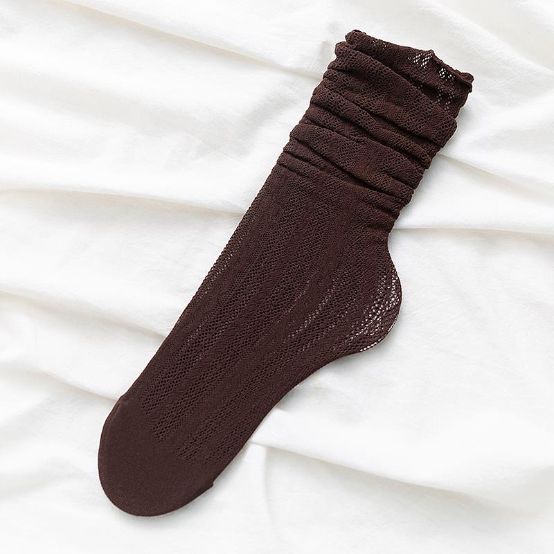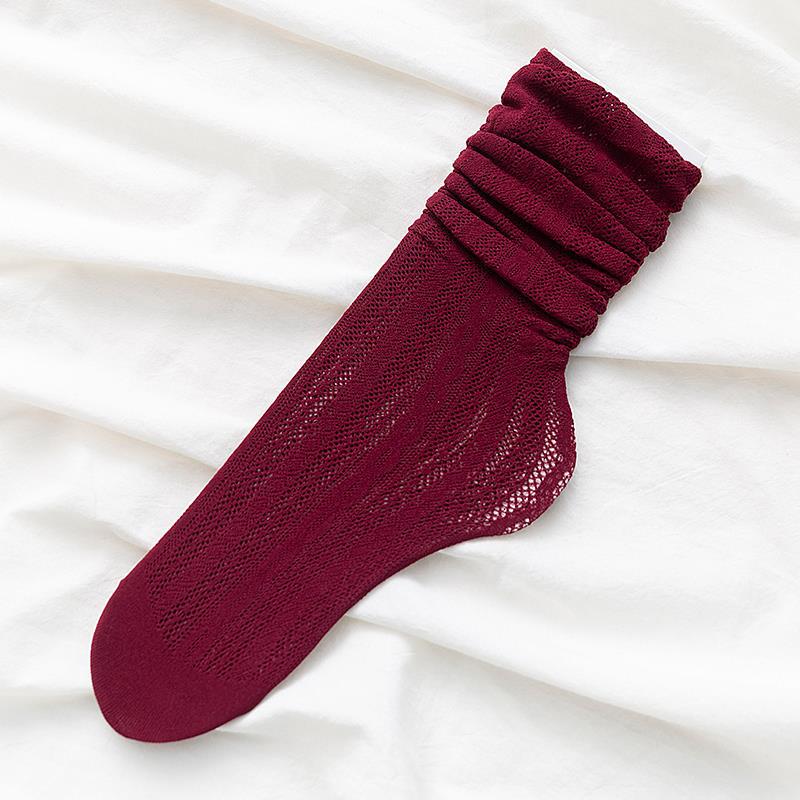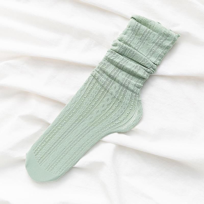 양말 여성용 통기성 중간 길이 양말 벨벳 봄 얇은 TikTok 같은 스타일 스택 요정 양말 중공 스타킹