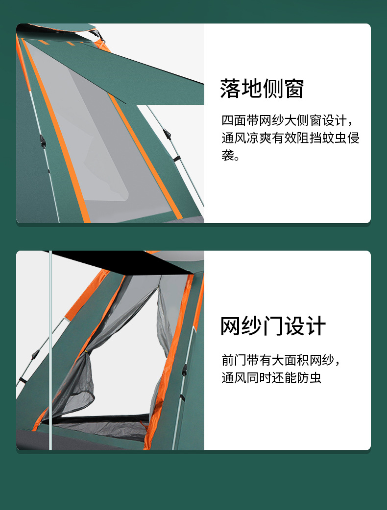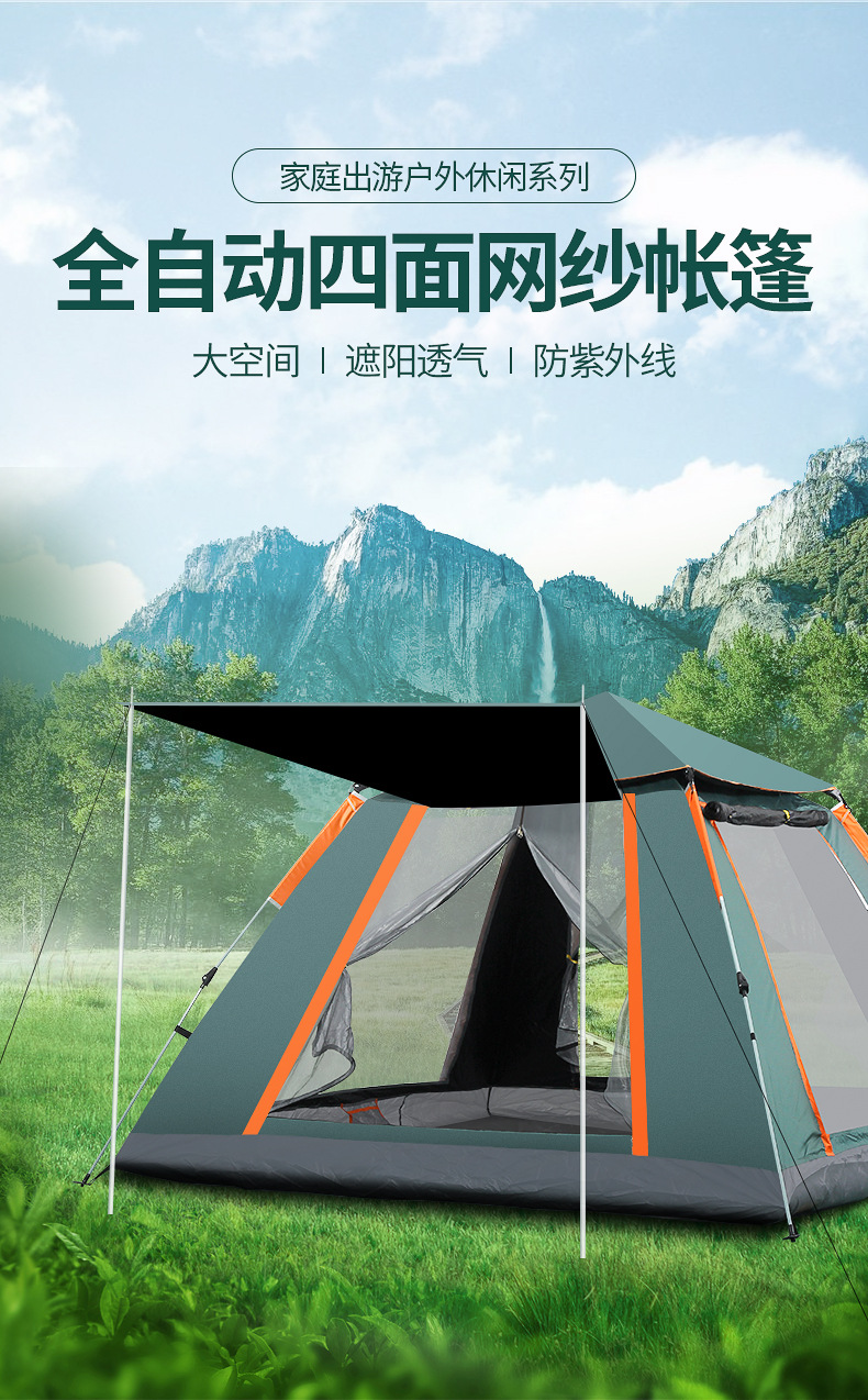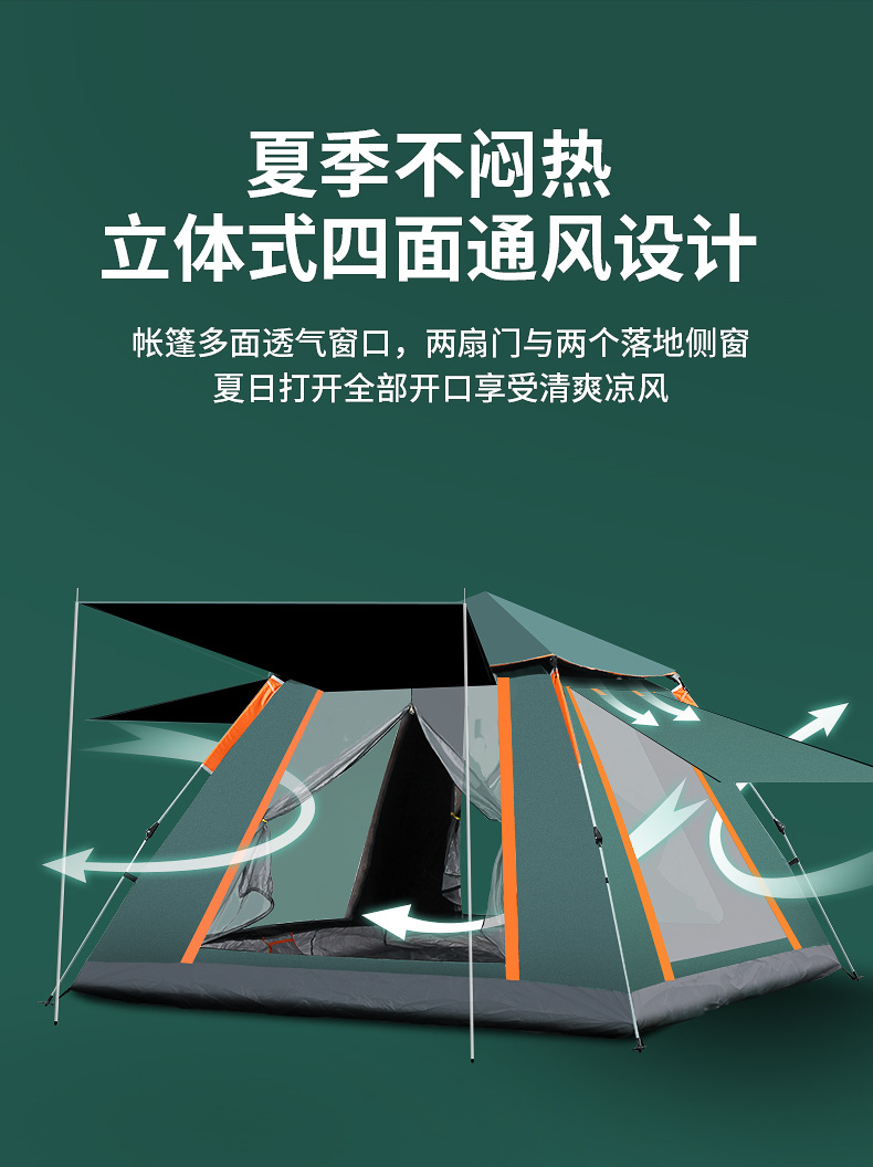 다인용 완전 자동 야외 텐트, 한 방, 한 홀, 단층 천막, 검은 색 고무, 두 개의 문 및 두 개의 창문스토어 가기