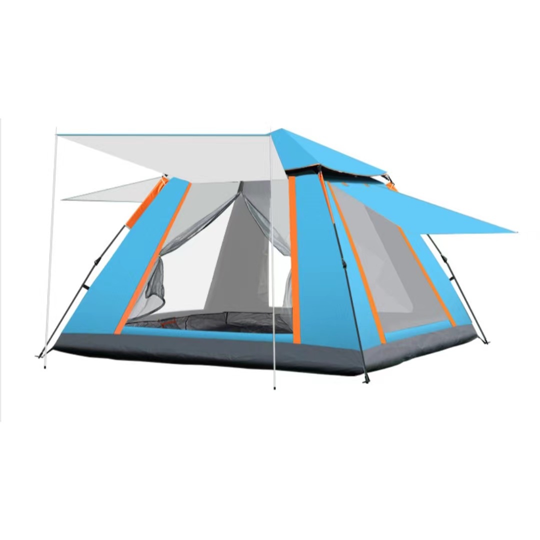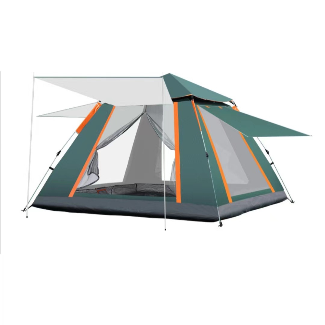 다인용 완전 자동 야외 텐트, 한 방, 한 홀, 단층 천막, 검은 색 고무, 두 개의 문 및 두 개의 창문