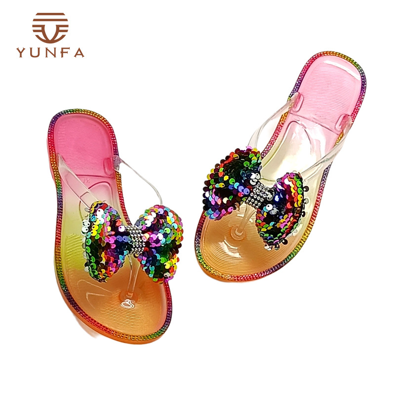 도매 2022 새로운 달콤한 활 색상 매칭 젤리 슬리퍼 휴가 홈 캐주얼 멀티 컬러 그라디언트 플립 플롭