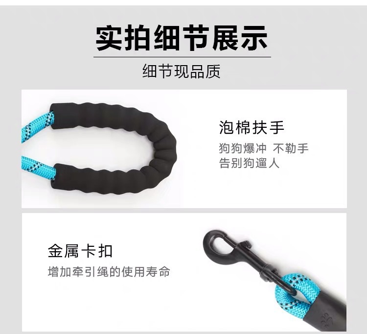 공장 직판 도매 애완견 목줄, 손이 아프지 않은 애견 목줄, 야간 반사 다색 원형 로프 애완견 목줄스토어 가기