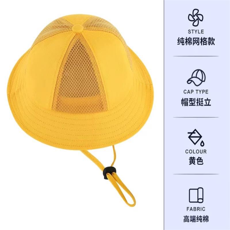 작은 노란색 모자 유치원 인쇄 로고 어린이 어부 모자 맞춤형 볼 초등학생 태양 보호 태양 모자 여름