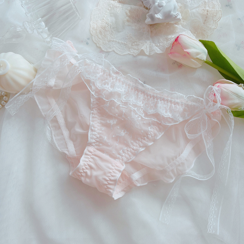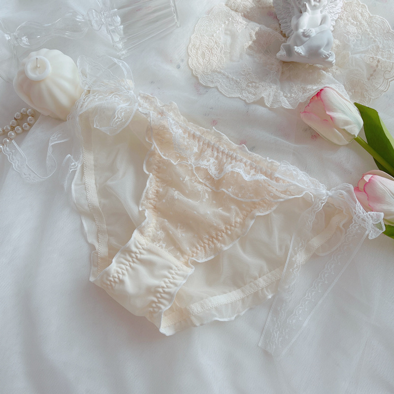레이스 업 팬티 여성 섹시한 일본의 달콤한 레이스 메쉬 단색 중등 대학 스타일 여자 브리프 도매스토어 가기
