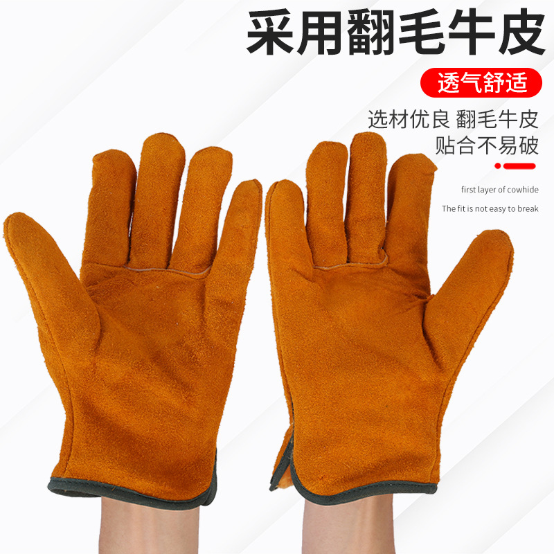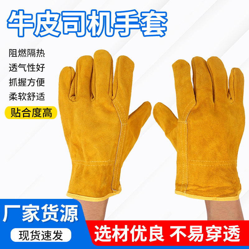 전체 소가죽 용접 장갑 운전자 용 2 층 노란색 내마모성 용접 용접기 보호 장갑스토어 가기