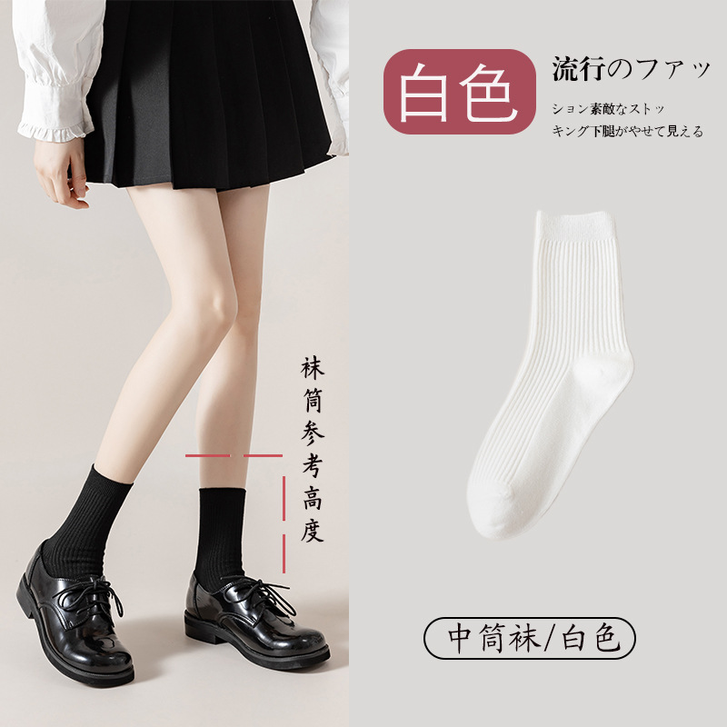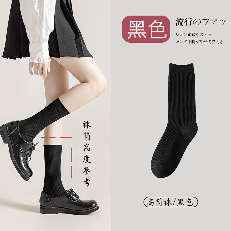 여성용 봄가을 중목 양말 스트라이프 여성 양말 컬리지 스타일 이중 바늘 종아리 양말 일본식 흑백 롱 양말 무릎 위 양말 보트 양말스토어 가기